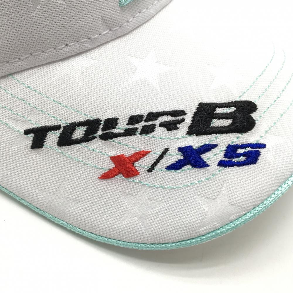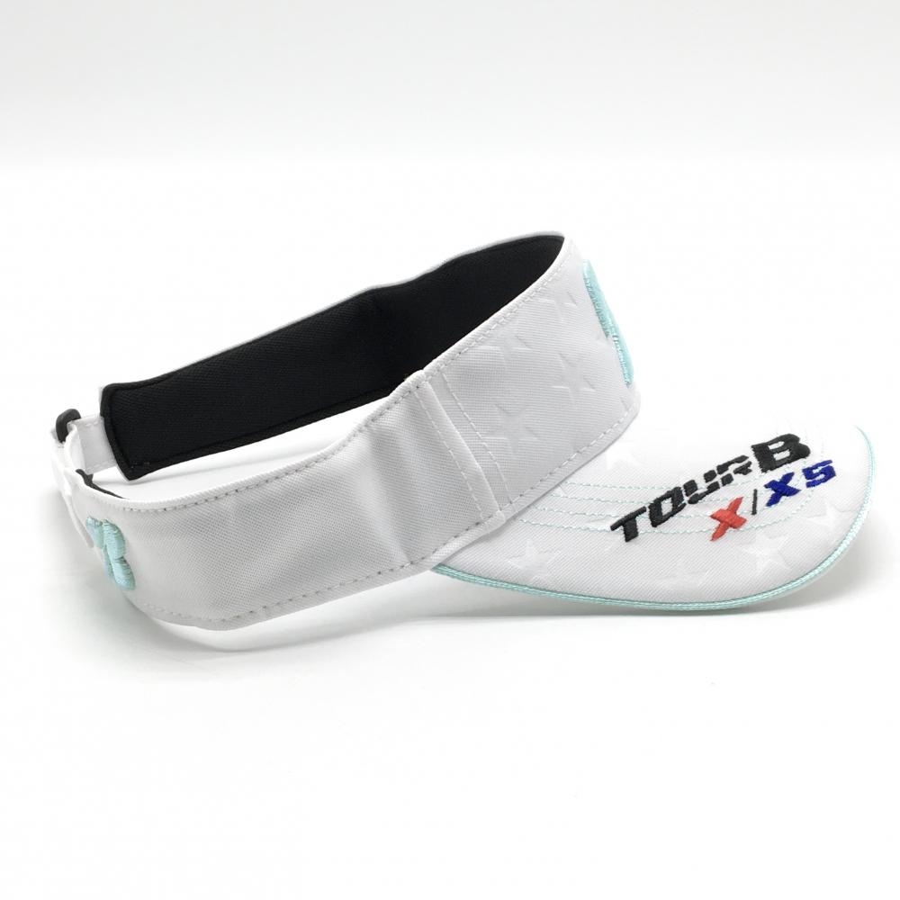 【美品】ブリヂストンTOURB サンバイザー 白 星織生地 ロゴミントグリーン ゴルフウェア Bridgestone