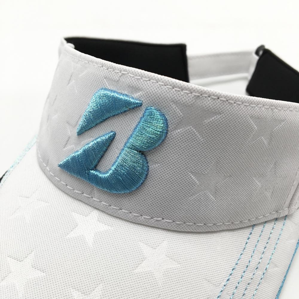 【超美品】ブリヂストンTOURB サンバイザー 白 星織生地 ロゴライトブルー ゴルフウェア Bridgestone