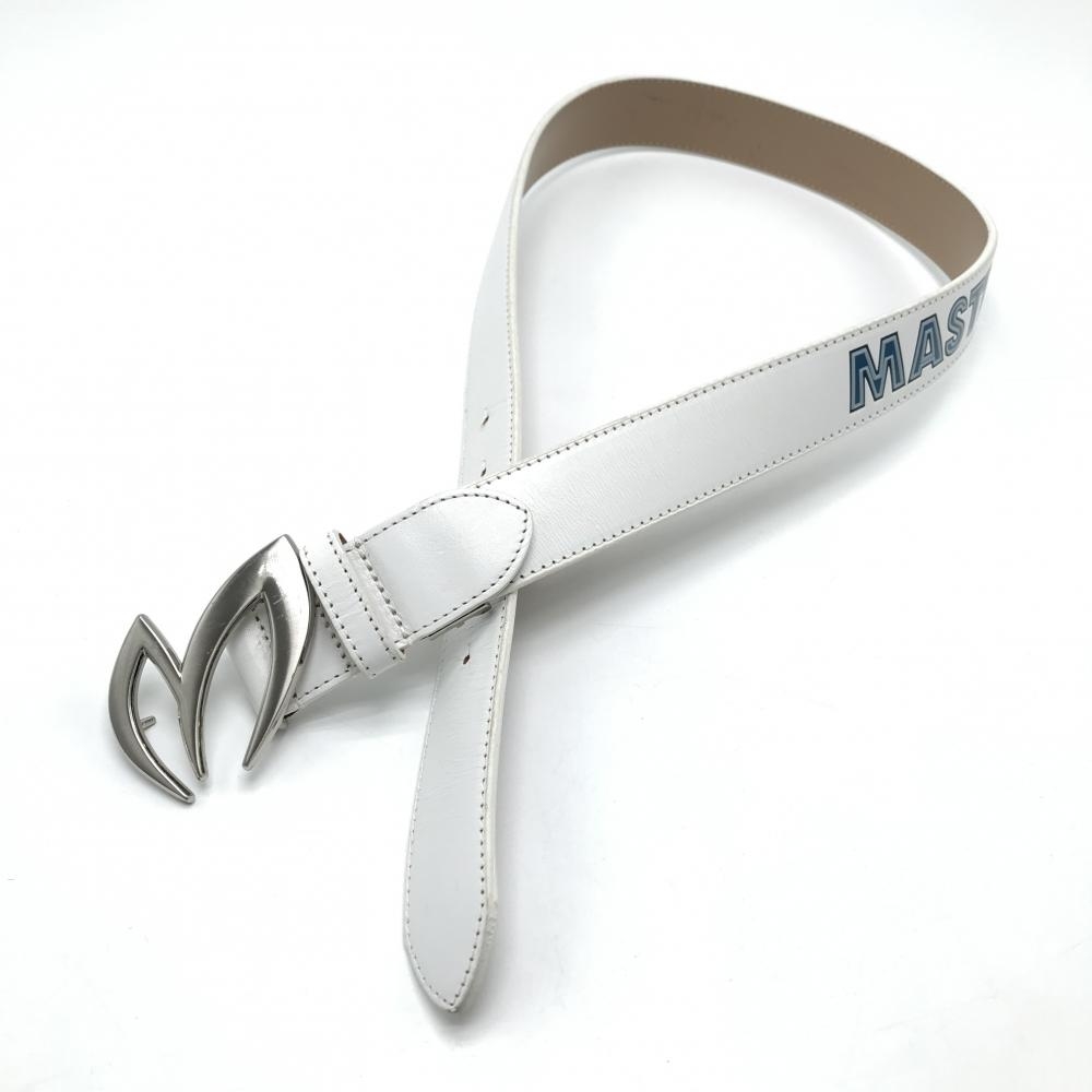 【美品】マスターバニー トップ式ベルト 白×ブルー ロゴ シルバーバックル レディース ゴルフウェア MASTER BUNNY EDITION