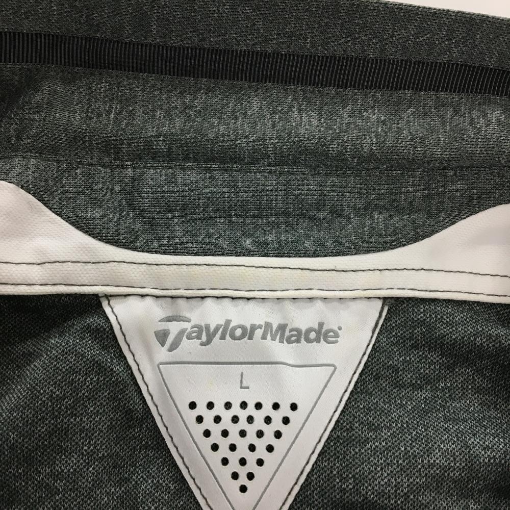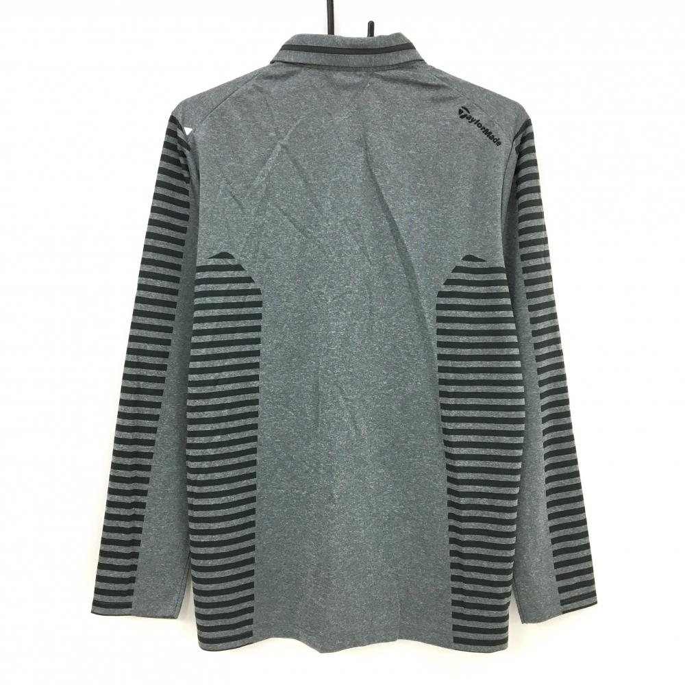 テーラーメイド 長袖ポロシャツ グレー×黒 袖・サイドボーダー 肩ロゴ メンズ L ゴルフウェア TaylorMade