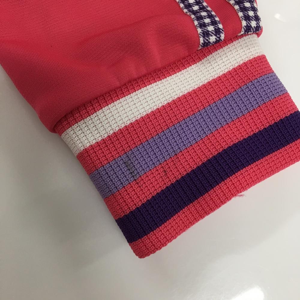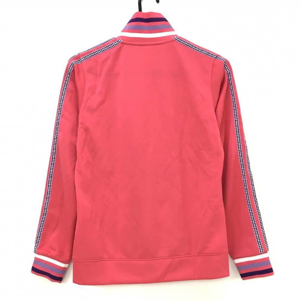 【美品】アディダス ブルゾン ピンク×白×パープル 袖ライン ロゴ刺しゅう レディース M ゴルフウェア adidas