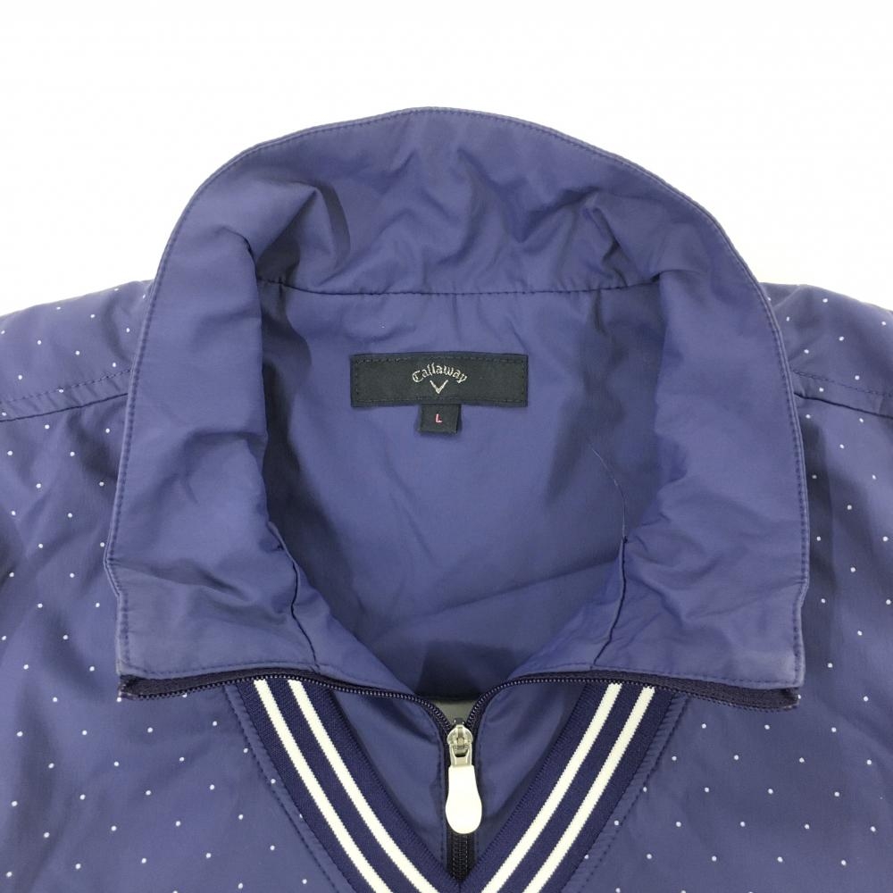 【美品】キャロウェイ 4WAY中綿スニード パープルネイビー×白 ドット柄 ネック・袖着脱可 レディース L ゴルフウェア Callaway