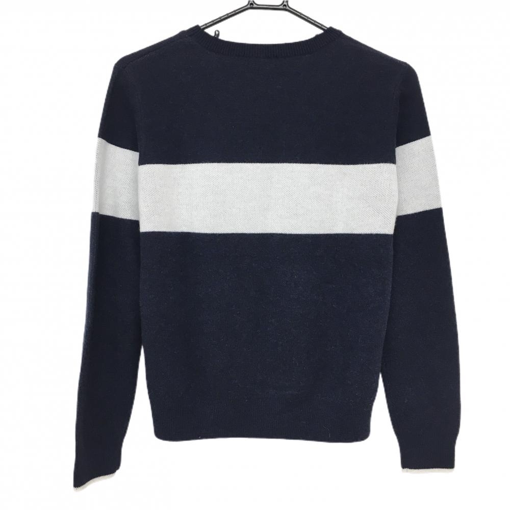 【美品】バンヤードストーム セーター ネイビー×白 フロントロゴ ウール混 ニット レディース 0 ゴルフウェア BARNYARDSTORM