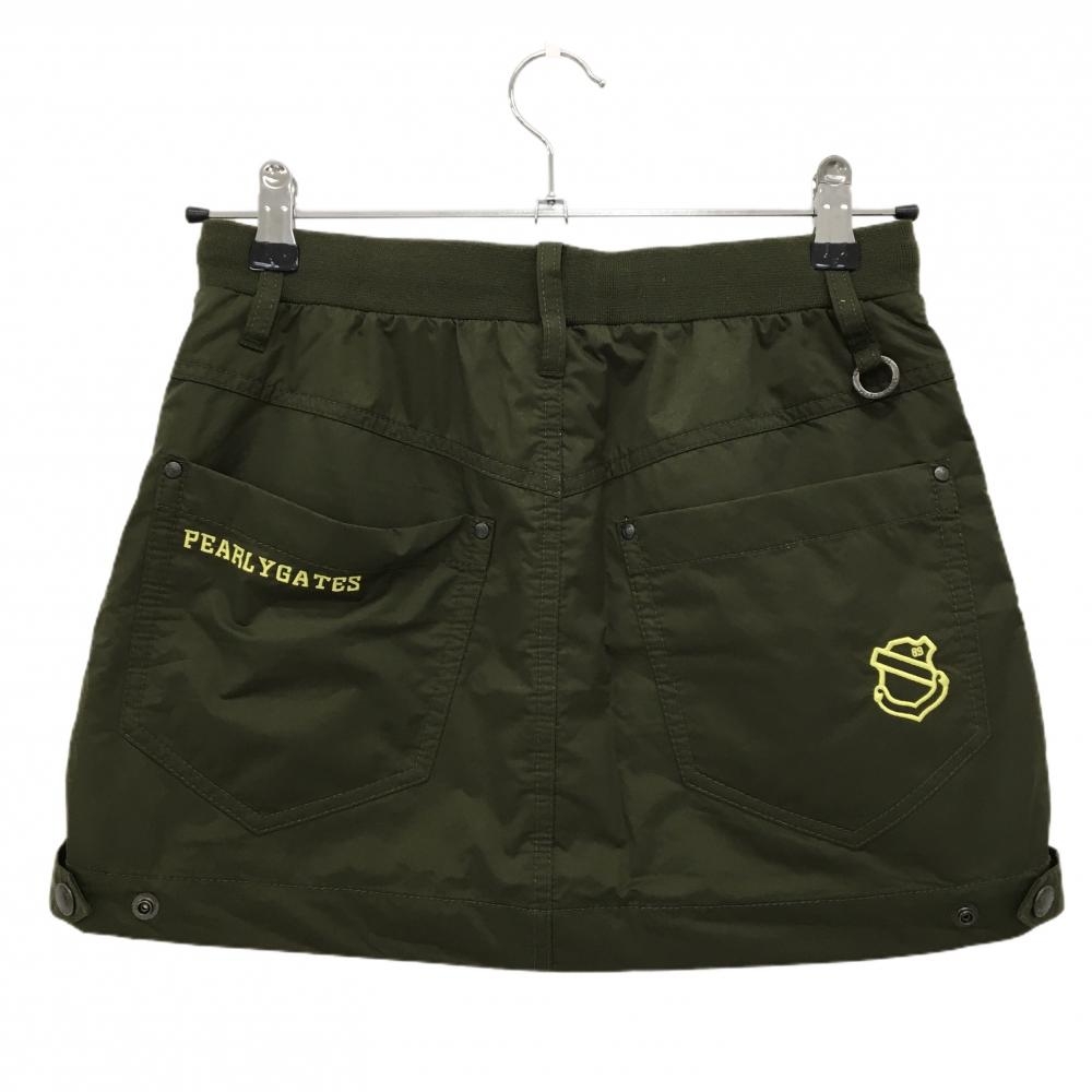 【美品】パーリーゲイツ スカート ダークグリーン×イエロー ロゴ刺しゅう ウエストゴム レディース 0(XS) ゴルフウェア PEARLY GATES