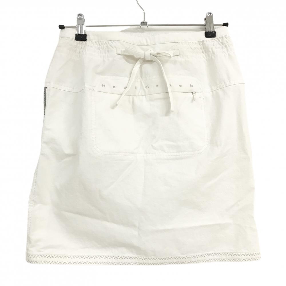 ヒールクリーク スカート 白×グレー サイドジップ 後ろリボン レディース 40(M) ゴルフウェア Heal Creek