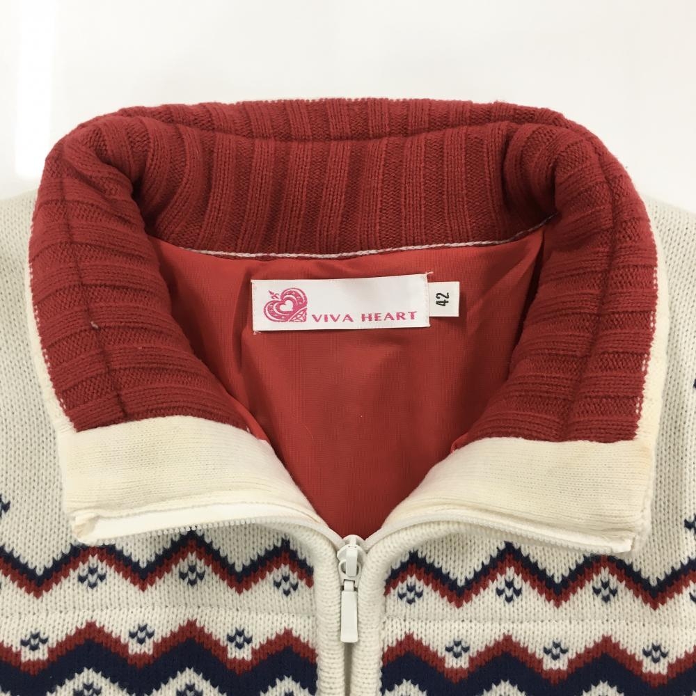 ビバハート アウターベスト アイボリー×ネイビー ニット ノルディック柄 ウール混 裏地付き レディース 42(L) ゴルフウェア VIVA HEART