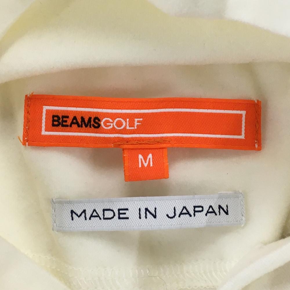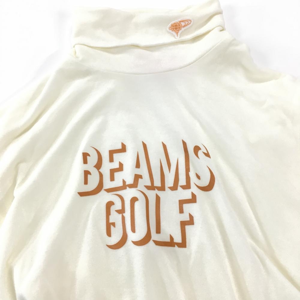 【超美品】ビームスゴルフ 長袖タートルネックシャツ 白系×オレンジブラウン 表微起毛 ロゴ メンズ M ゴルフウェア BEAMS GOLF
