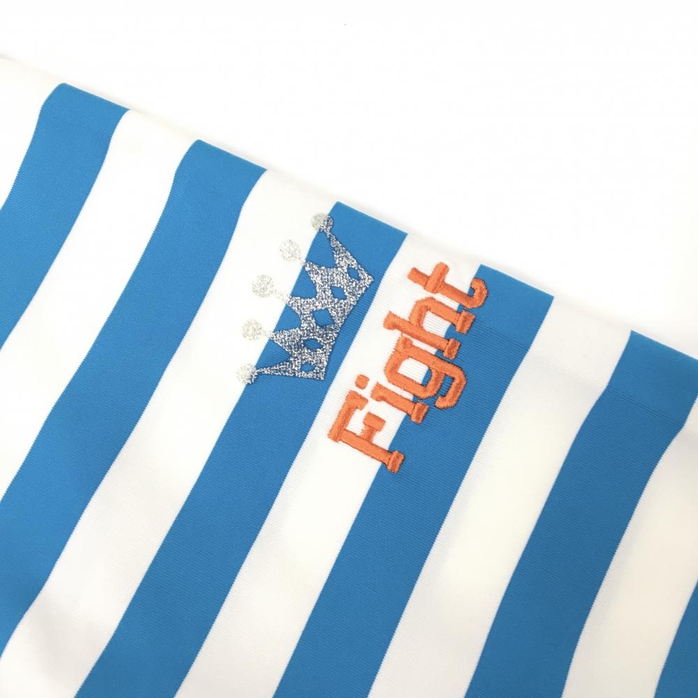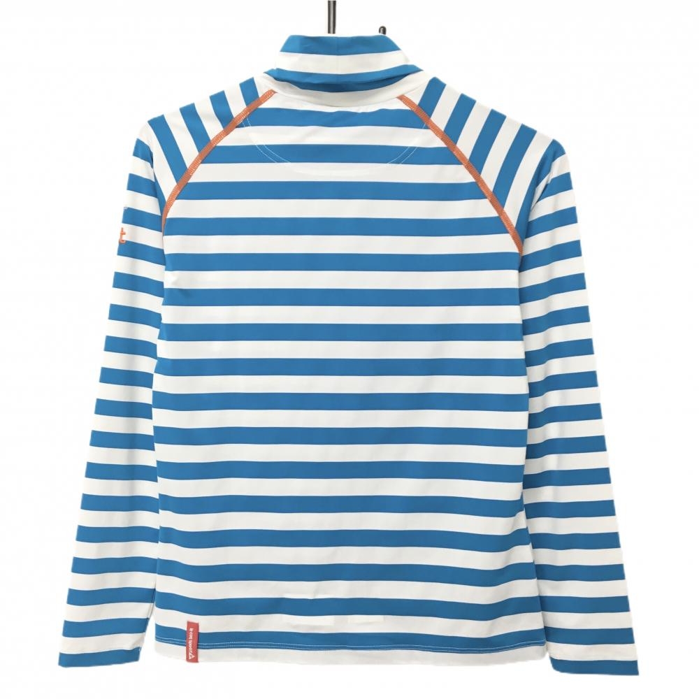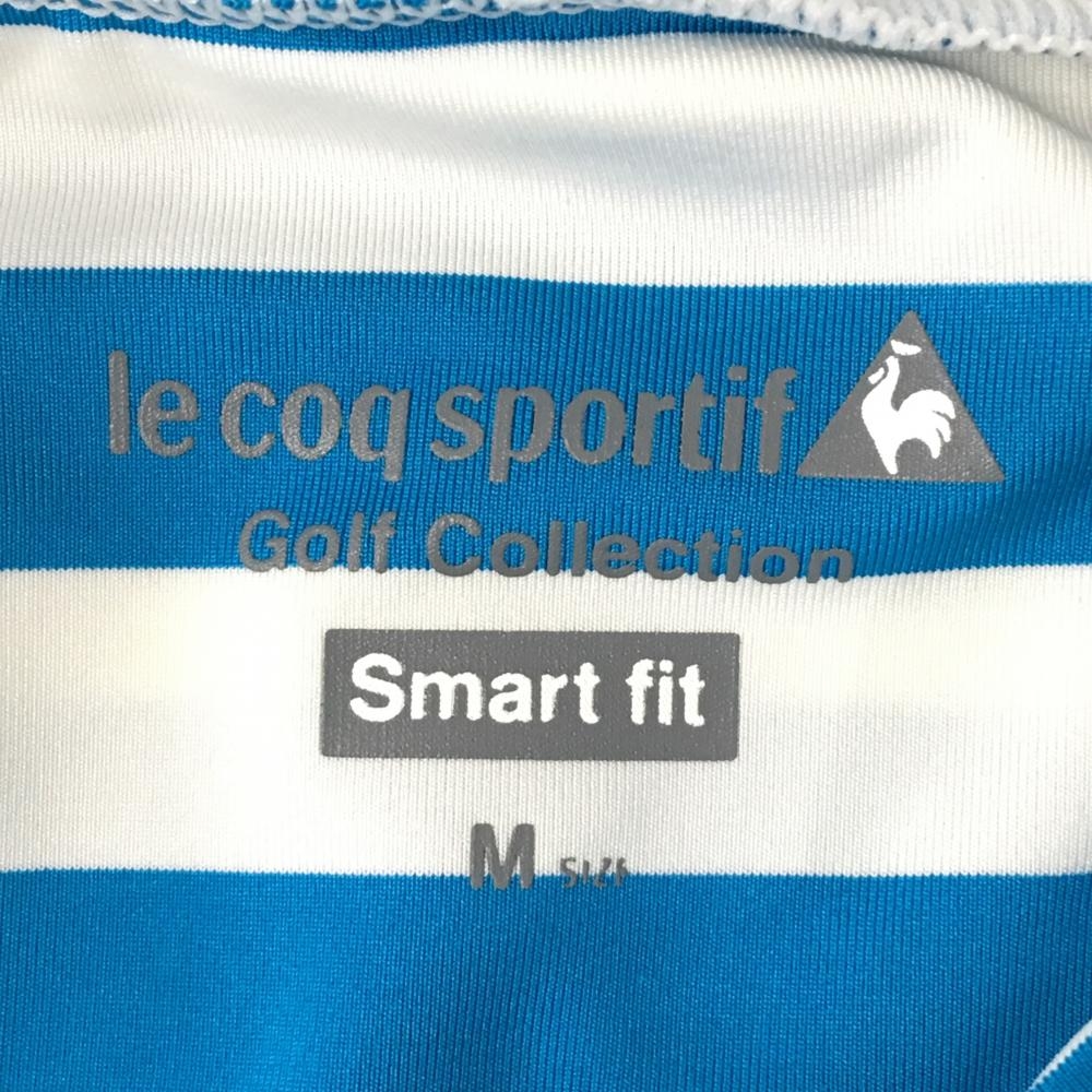 【美品】ルコックゴルフ 長袖タートルネックシャツ 白×ブルー ボーダー ロゴ刺しゅう レディース M ゴルフウェア le coq sportif