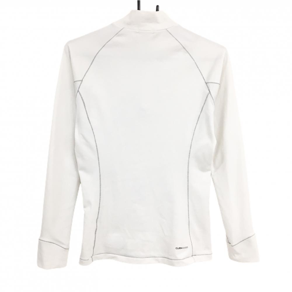 【美品】アディダス 長袖ハイネックシャツ 白×グレー ハーフジップ 裏微起毛 レディース M ゴルフウェア adidas