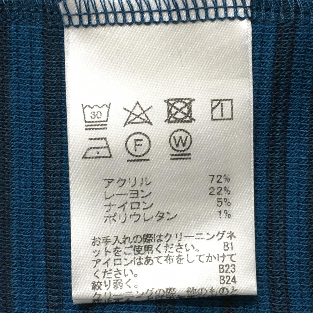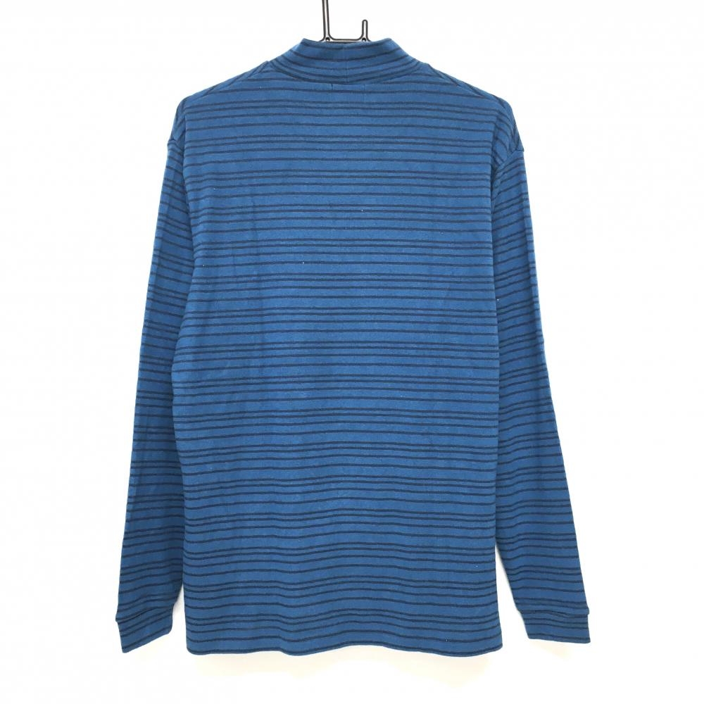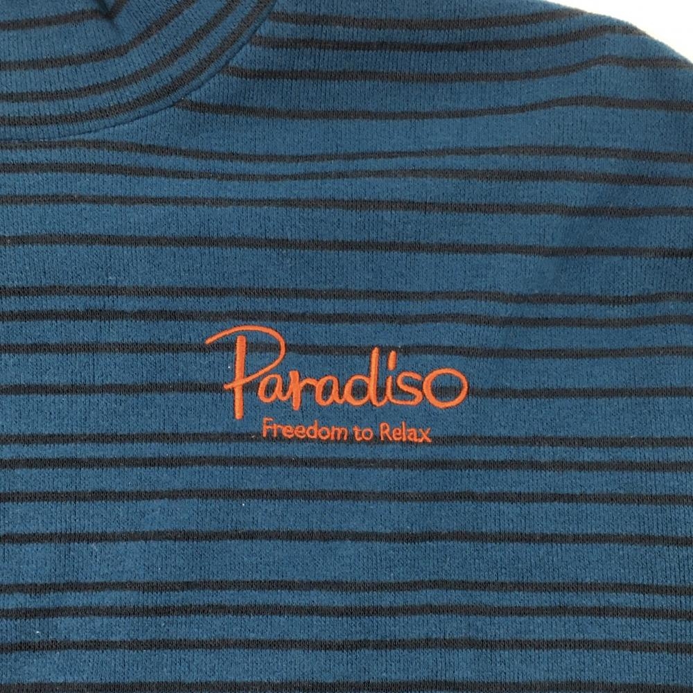 【超美品】パラディーゾ 長袖ハイネックシャツ ブルー系×ネイビー ボーダー ロゴ刺しゅう 表微起毛 メンズ L ゴルフウェア Paradiso