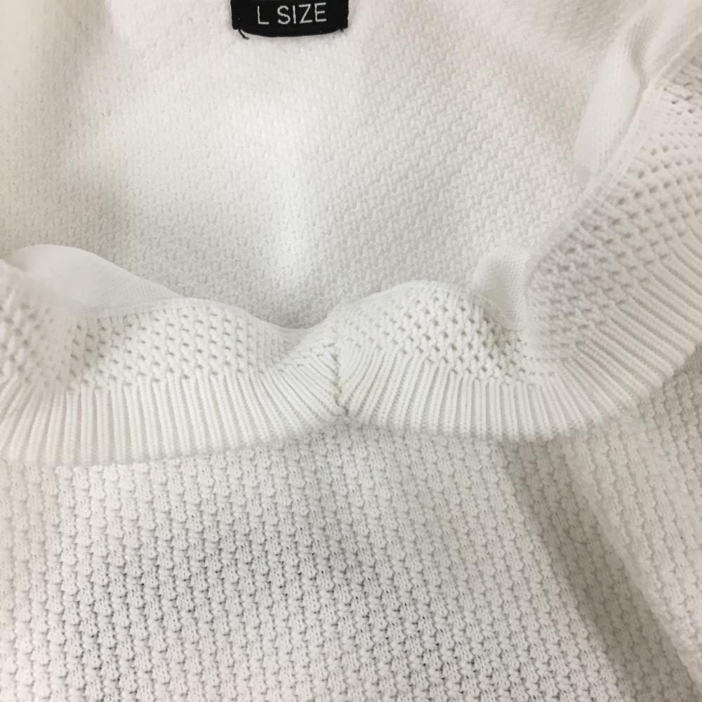 【美品】ブリヂストン セーター 白 身頃・袖織生地 胸元ロゴ Vネック ニット メンズ L ゴルフウェア Bridgestone
