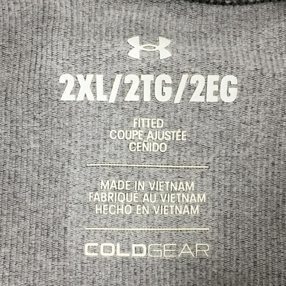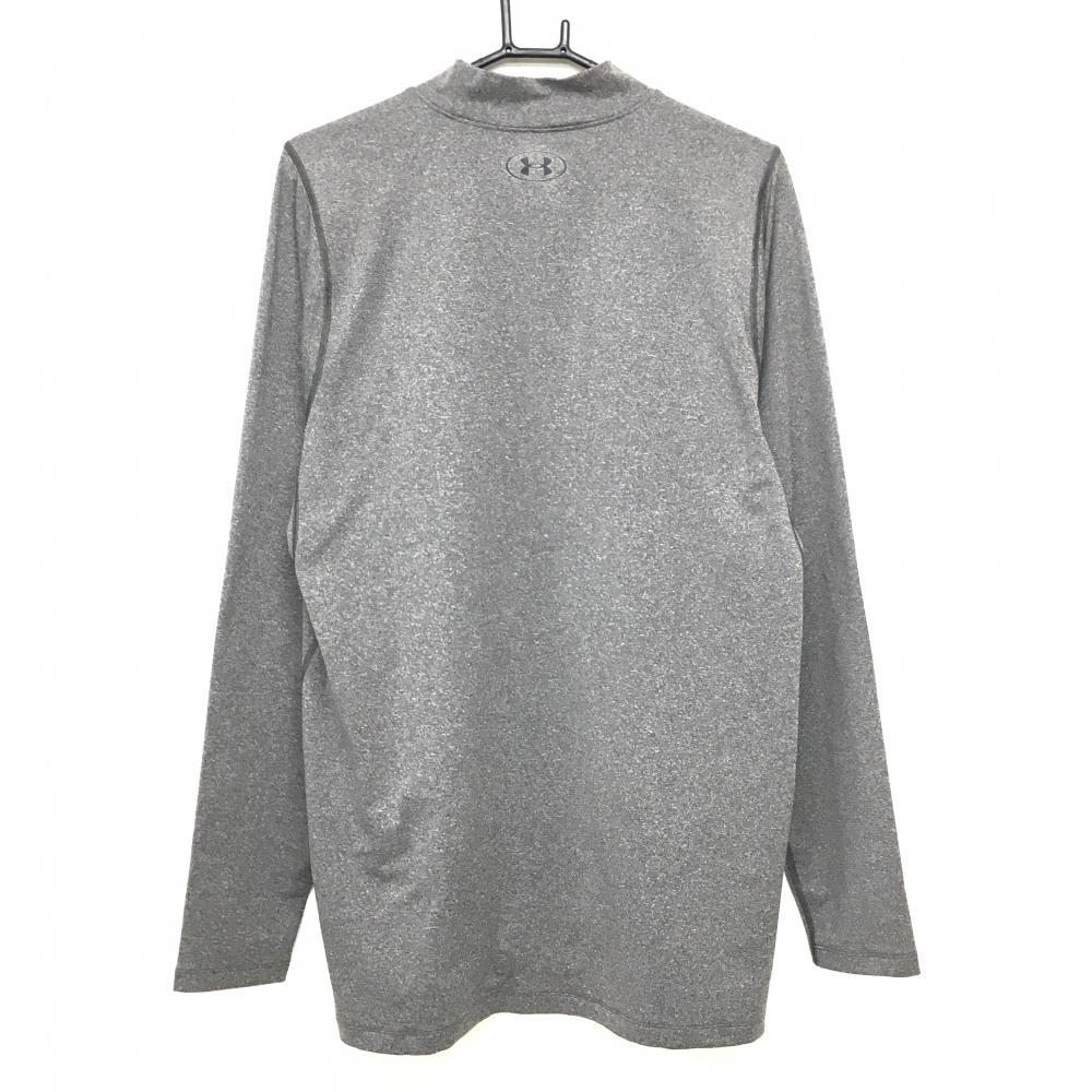 【超美品】アンダーアーマー 長袖ハイネックシャツ 杢グレー ロゴプリント 裏微起毛 メンズ 2XL/2TG/2EG ゴルフウェア UNDER ARMOUR