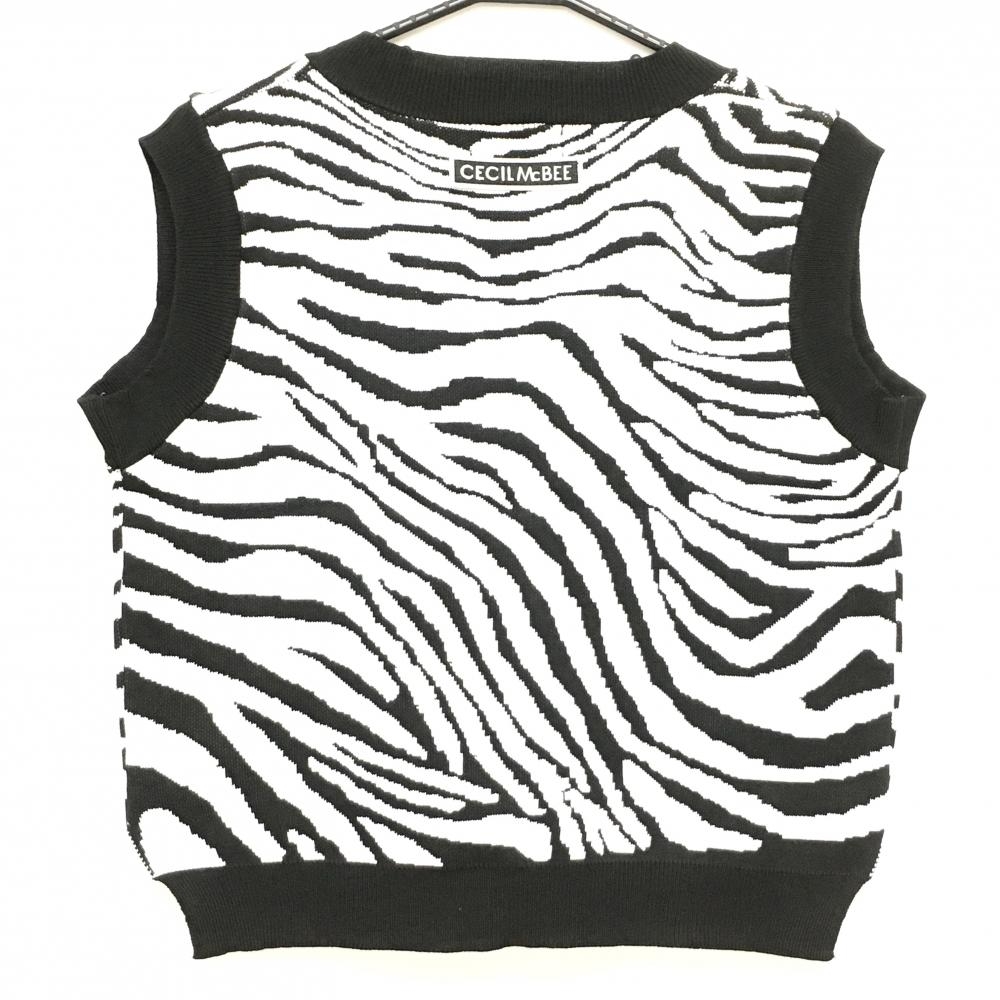 【新品】セシルマクビーグリーン ニットベスト 黒×白 ゼブラ柄 レディース F ゴルフウェア CECIL McBEE