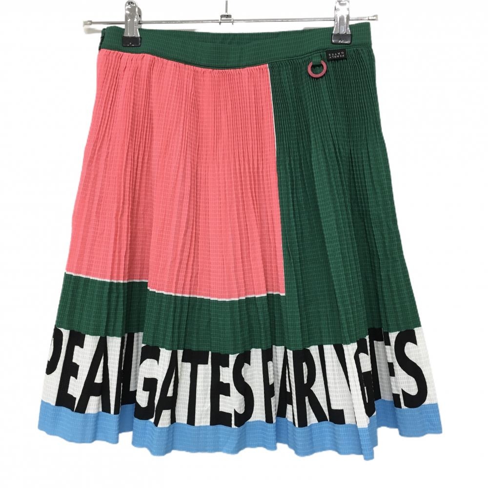 【超美品】パーリーゲイツ スカート グリーン×ピンク メッシュ調 内側インナーパンツ レディース 0(S) ゴルフウェア PEARLY GATES