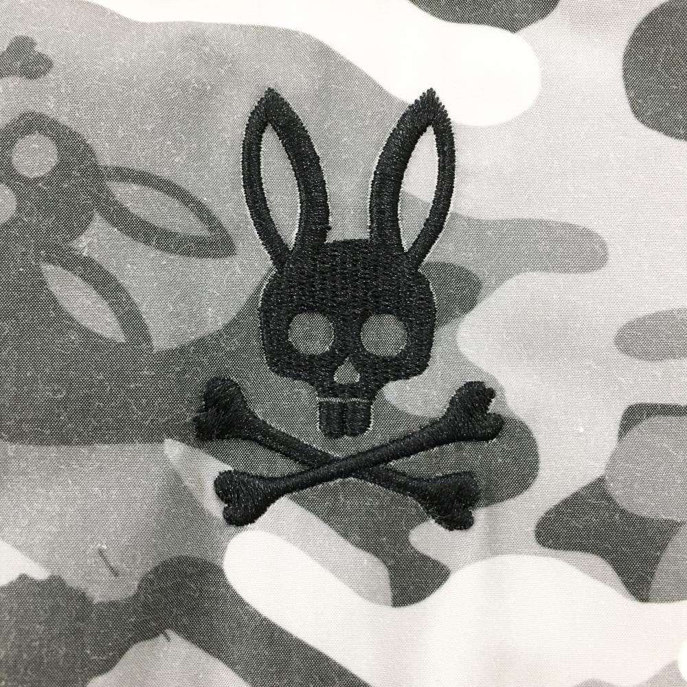 【美品】サイコバニー 中綿ジャケット グレー×白 カモフラ柄 迷彩 スカルラビット メンズ L ゴルフウェア Psycho Bunny