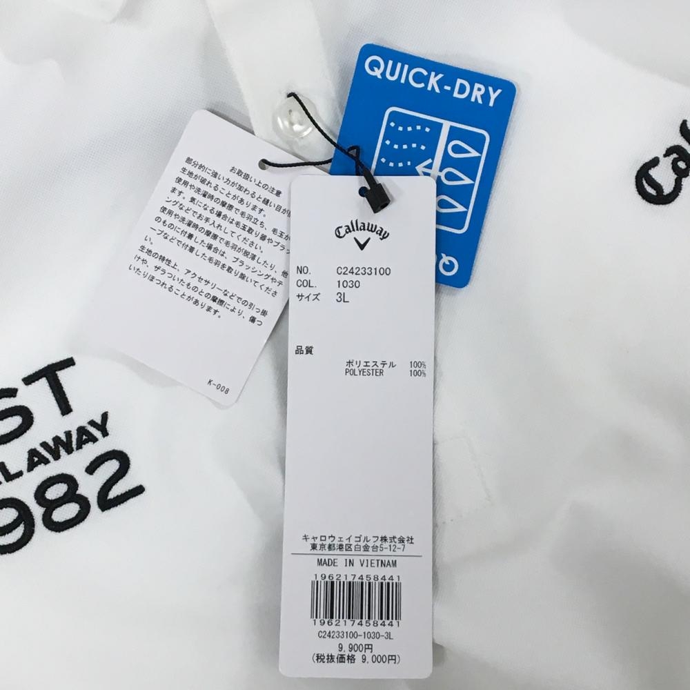 【新品】キャロウェイ 長袖ポロシャツ 白 ロゴ刺しゅう黒 速乾 メンズ 3L ゴルフウェア 2024年モデル 大きいサイズ Callaway