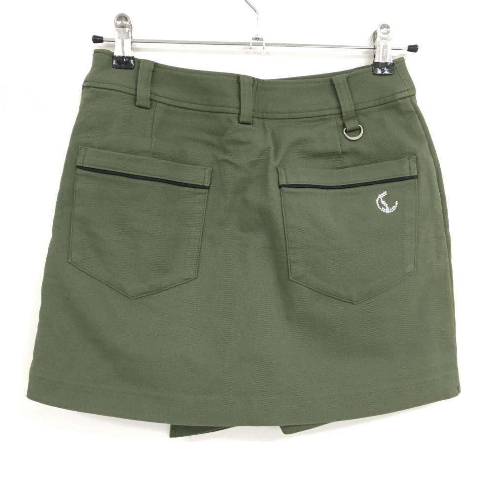 【美品】キャロウェイ スカート カーキ×黒 ラインストーンロゴ パイピング 内側インナーパンツ レディース S ゴルフウェア Callaway