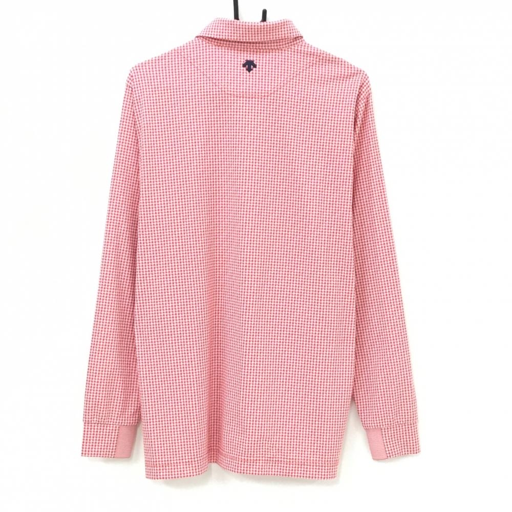 【超美品】スリクソンバイデサント 長袖ポロシャツ 白×レッド 総柄 チェック風 ロゴプリント メンズ LL ゴルフウェア SRIXON