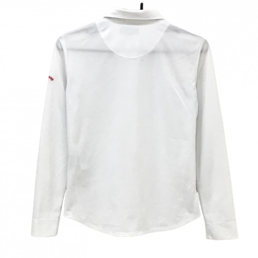 【超美品】キャロウェイ 長袖ポロシャツ 白×ピンク 飛行機プリント 袖刺しゅう レディース M ゴルフウェア Callaway