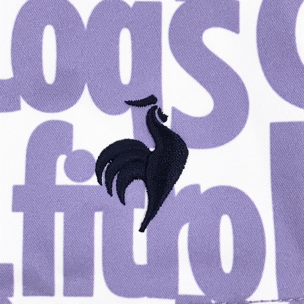 【超美品】ルコックゴルフ スカート 白×ライトパープル 英字総柄 裾ロゴ レディース 9 ゴルフウェア le coq sportif
