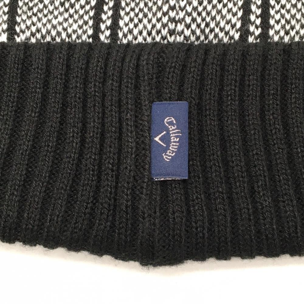 【超美品】キャロウェイ ニット帽 白×黒 チェック調 ロゴ刺しゅう FR ゴルフウェア Callaway