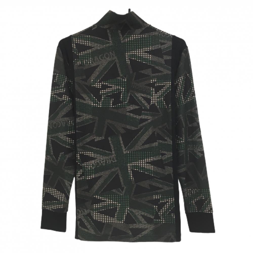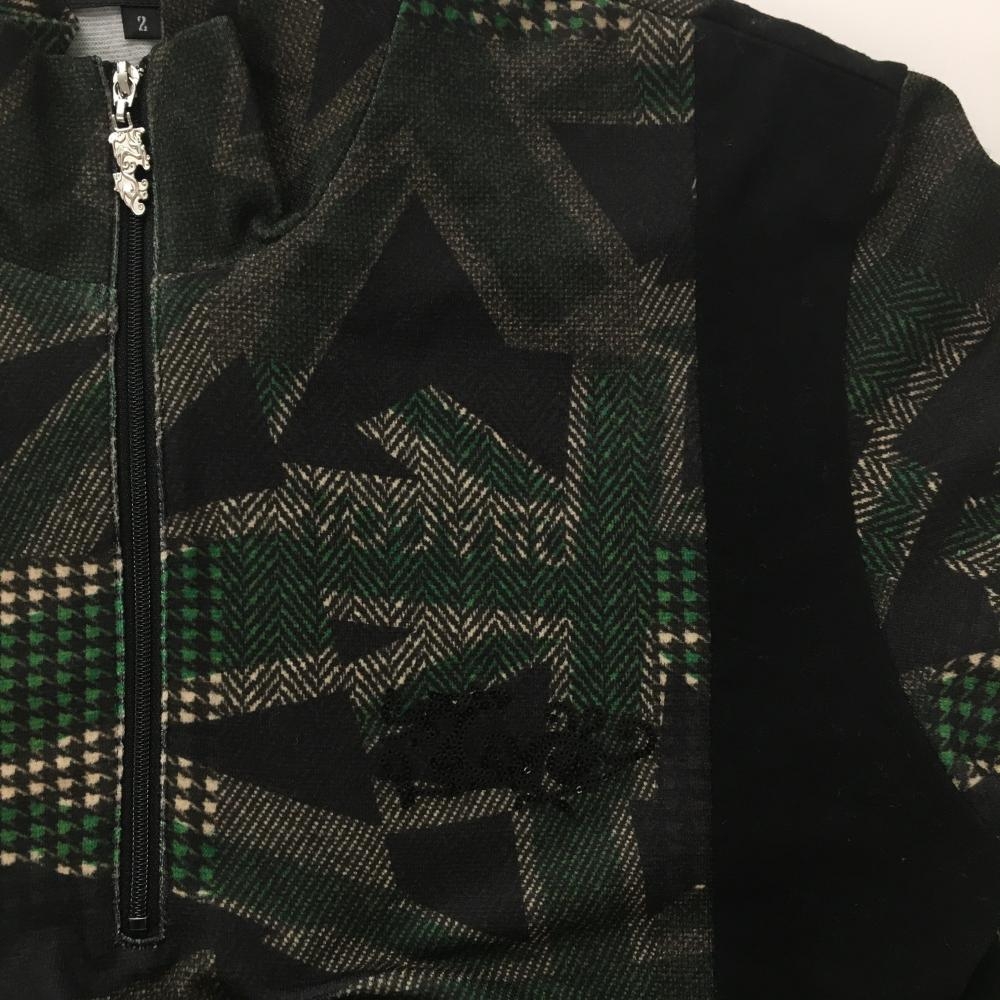 【美品】ダンスウィズドラゴン 長袖ハイネックシャツ 黒×グリーン 一部総柄 ハーフジップ メンズ 2(M) ゴルフウェア Dance With Dragon