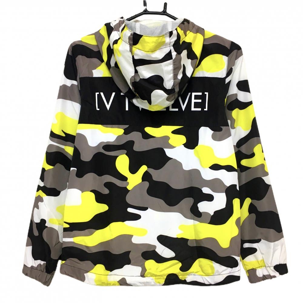【美品】V12 ジップパーカー 白×黒×イエロー カモフラ柄 迷彩 メッシュ裏地 バックロゴ レディース 0(S) ゴルフウェア V12