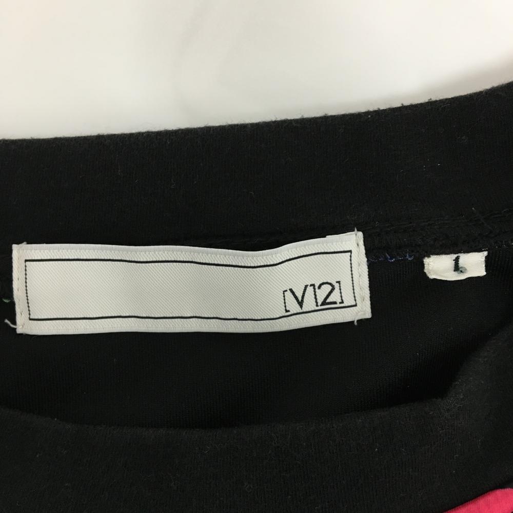 【美品】V12 トレーナー 黒×マルチカラー 一部カモフラ柄 迷彩 裾サイドジップ レディース 1(M) ゴルフウェア V12