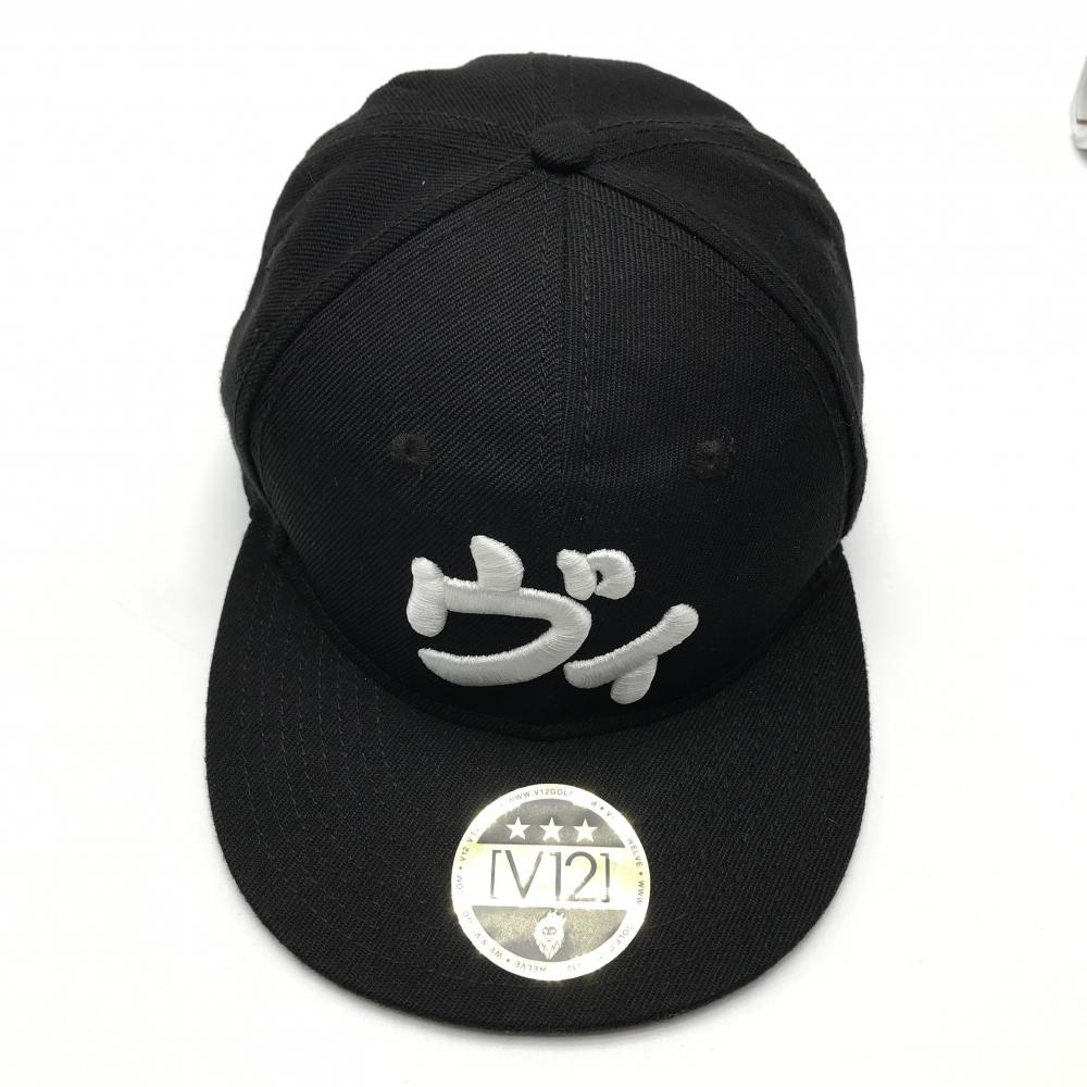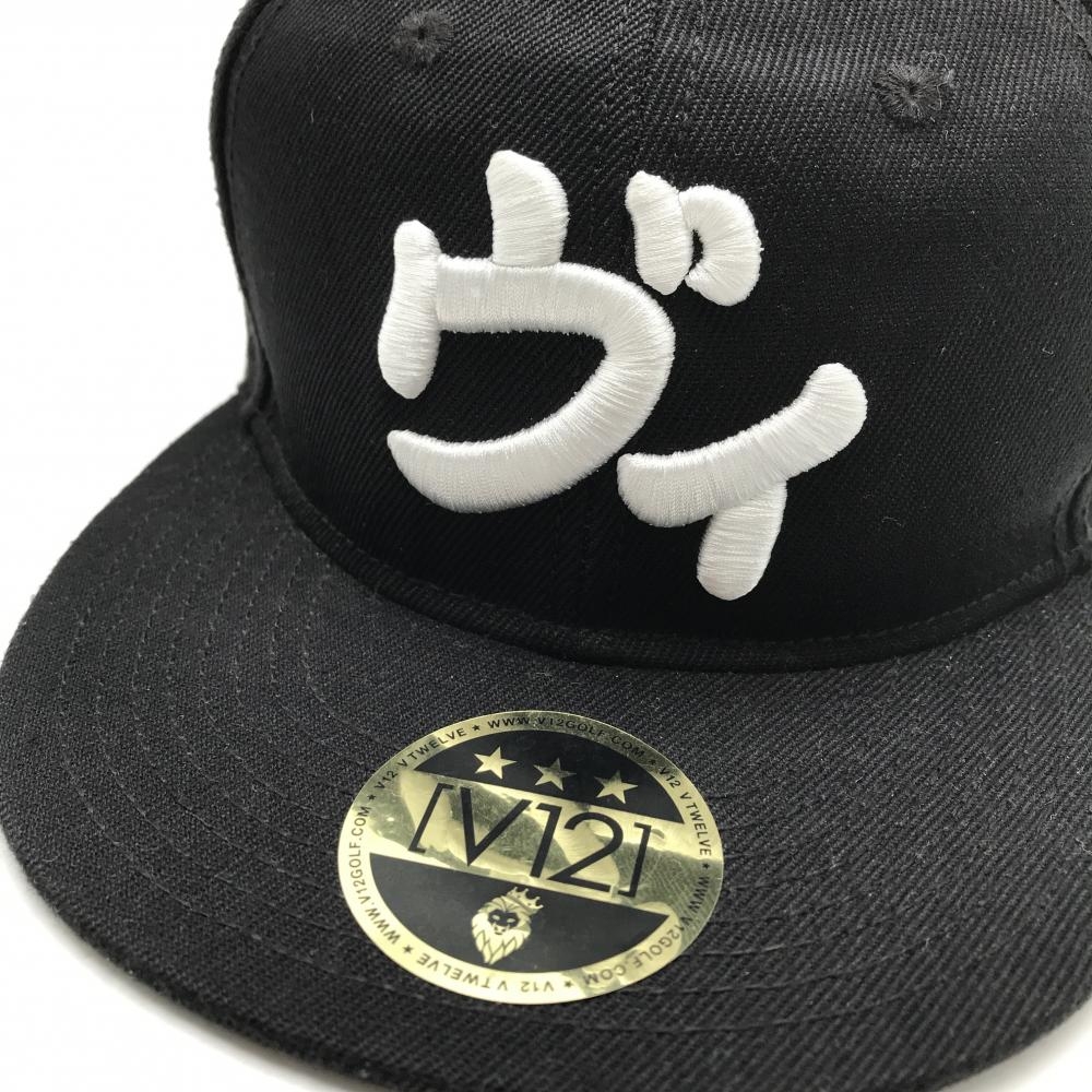 【美品】V12 フラットキャップ 黒×白 立体ロゴ ゴルフウェア V12