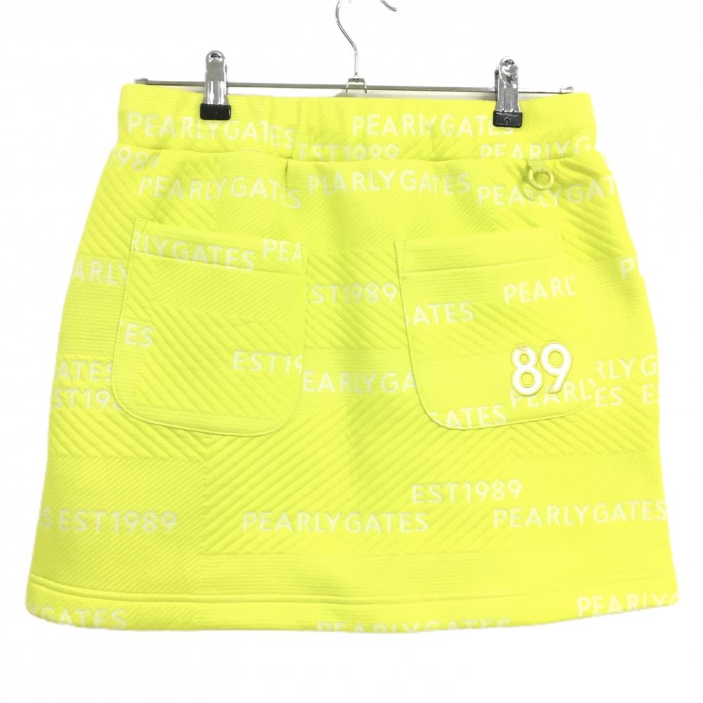 【超美品】パーリーゲイツ スカート イエロー×白 ロゴ総柄 キルティング風 レディース 2(L) ゴルフウェア PEARLY GATES