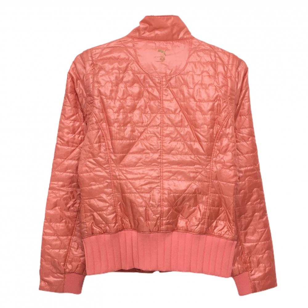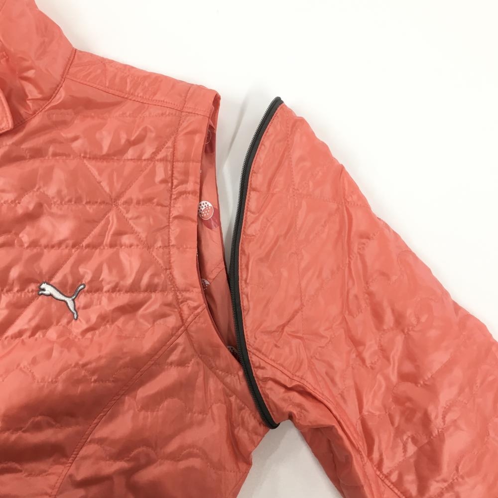 【美品】プーマ 2WAY中綿リバーシブルジャケット サーモンピンク キルティング風 裏ボール総柄 袖着脱可 レディース M ゴルフウェア PUMA