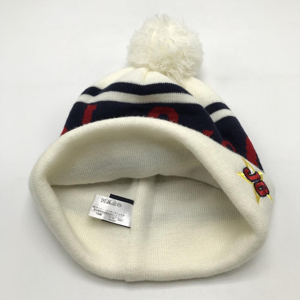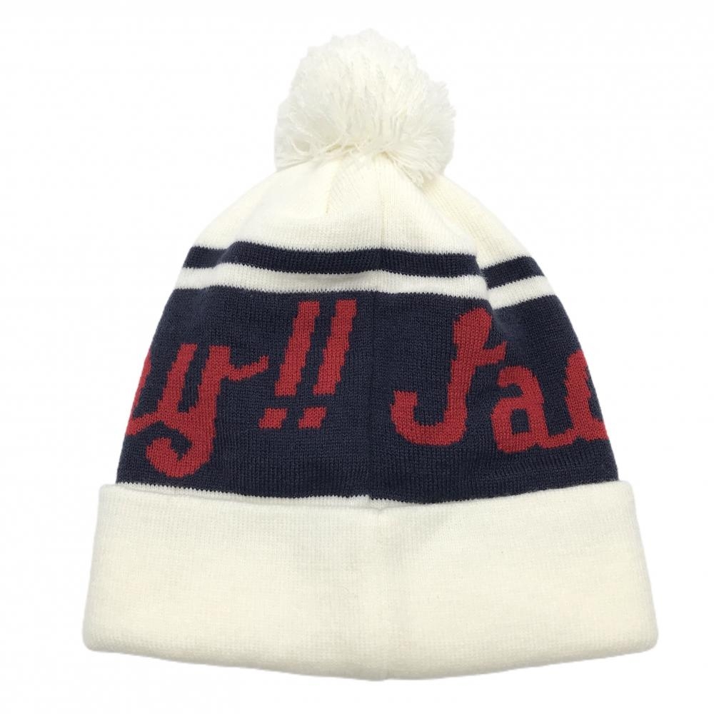 【超美品】ジャックバニー ニット帽 白×ネイビー ボンボン付 ロゴ刺しゅう FR ゴルフウェア Jack Bunny