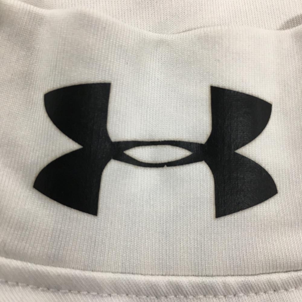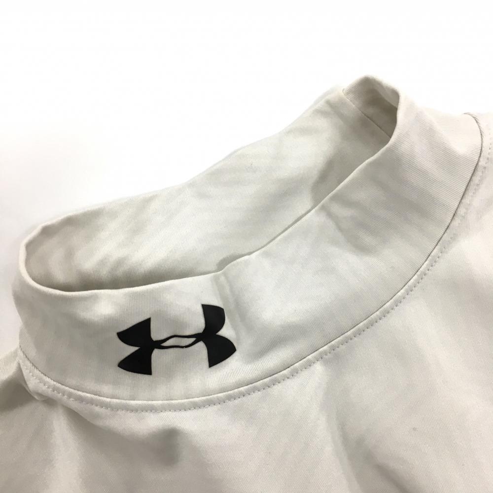 【美品】アンダーアーマー 長袖ハイネックシャツ 白×ライトグレー 地模様 ロゴ 裏微起毛 メンズ LG/G/G ゴルフウェア UNDER ARMOUR