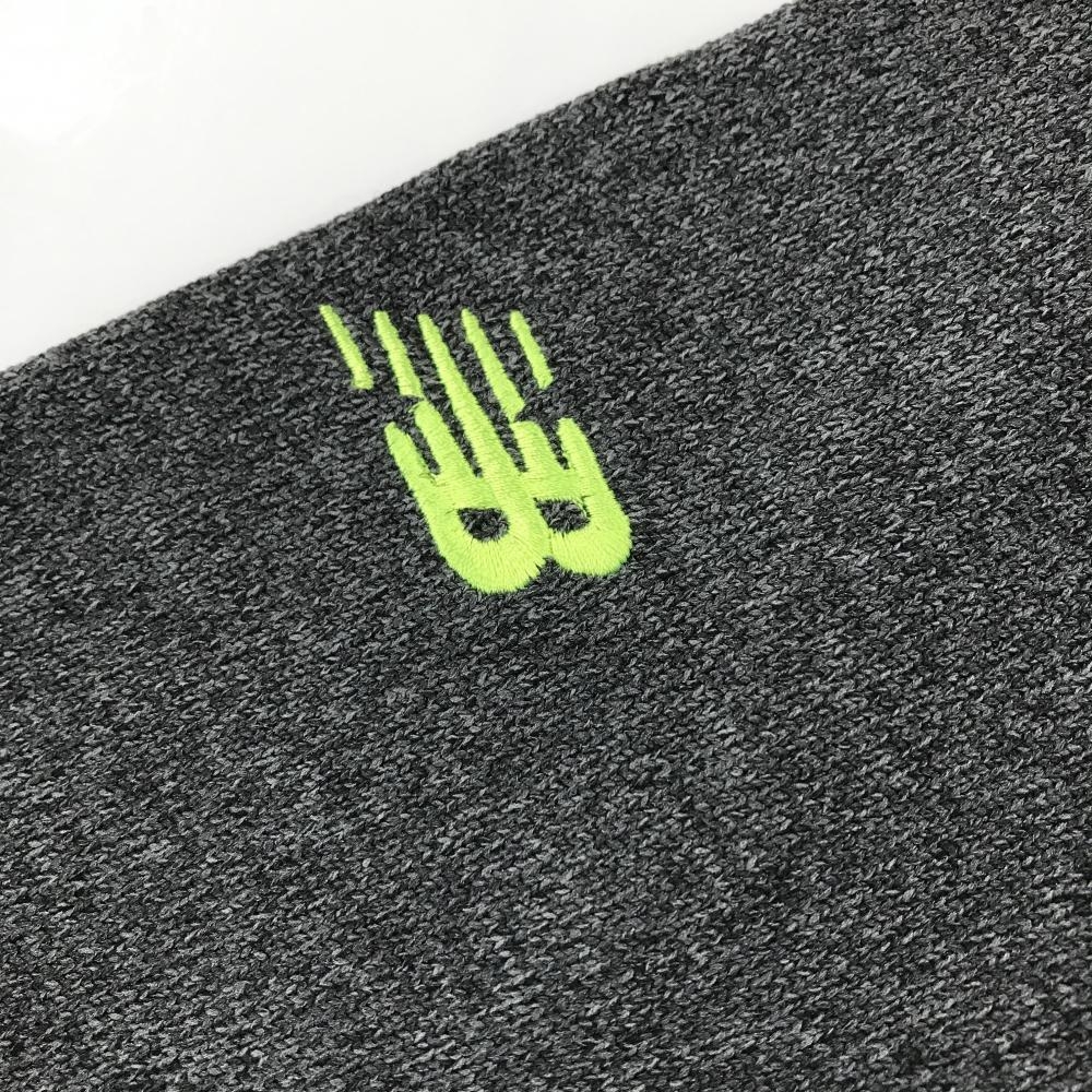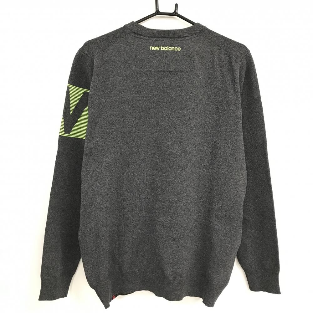 【超美品】ニューバランスゴルフ セーター 杢グレー×イエローグリーン 胸ボーダー風 ロゴ刺しゅう メンズ 5(L) ゴルフウェア New Balance