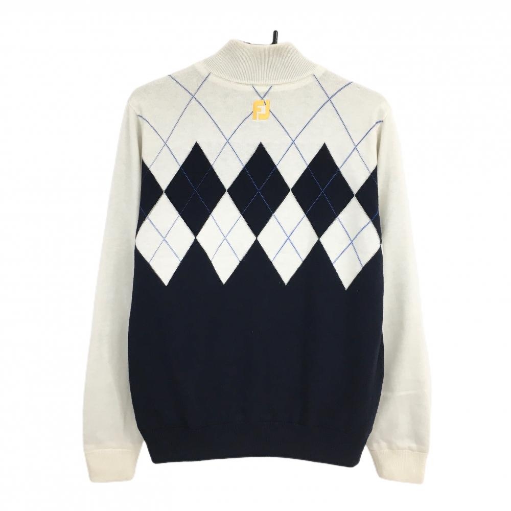 【美品】フットジョイ ニットブルゾン アイボリー×ネイビー 上部アーガイル柄 ウール混 裏地付 メンズ M ゴルフウェア FootJoy