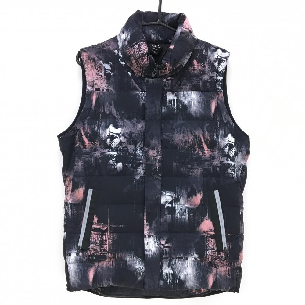 【超美品】オークリー ライナー付ダウンベスト 黒×ピンク 総柄 ライナー収納可 ロゴ刺しゅう ダウン90% メンズ XL ゴルフウェア Oakley