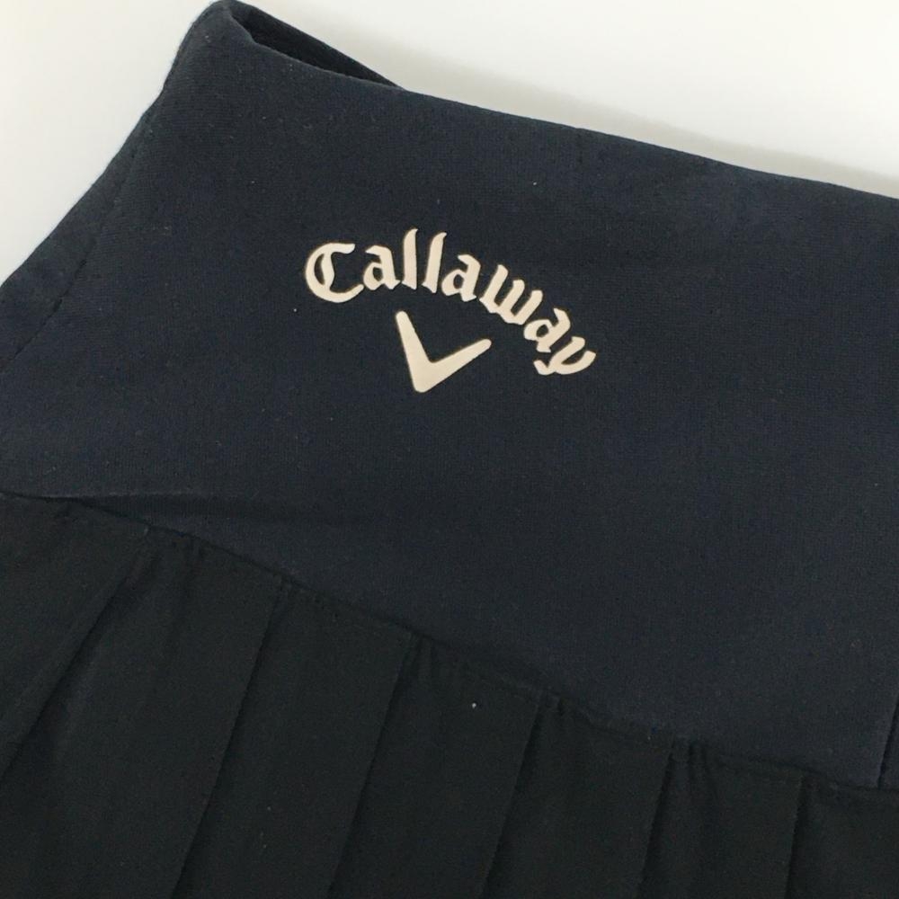 【美品】キャロウェイ プリーツスカート 黒×ダークネイビー 内側インナーパンツ ロゴプリント レディース S ゴルフウェア Callaway