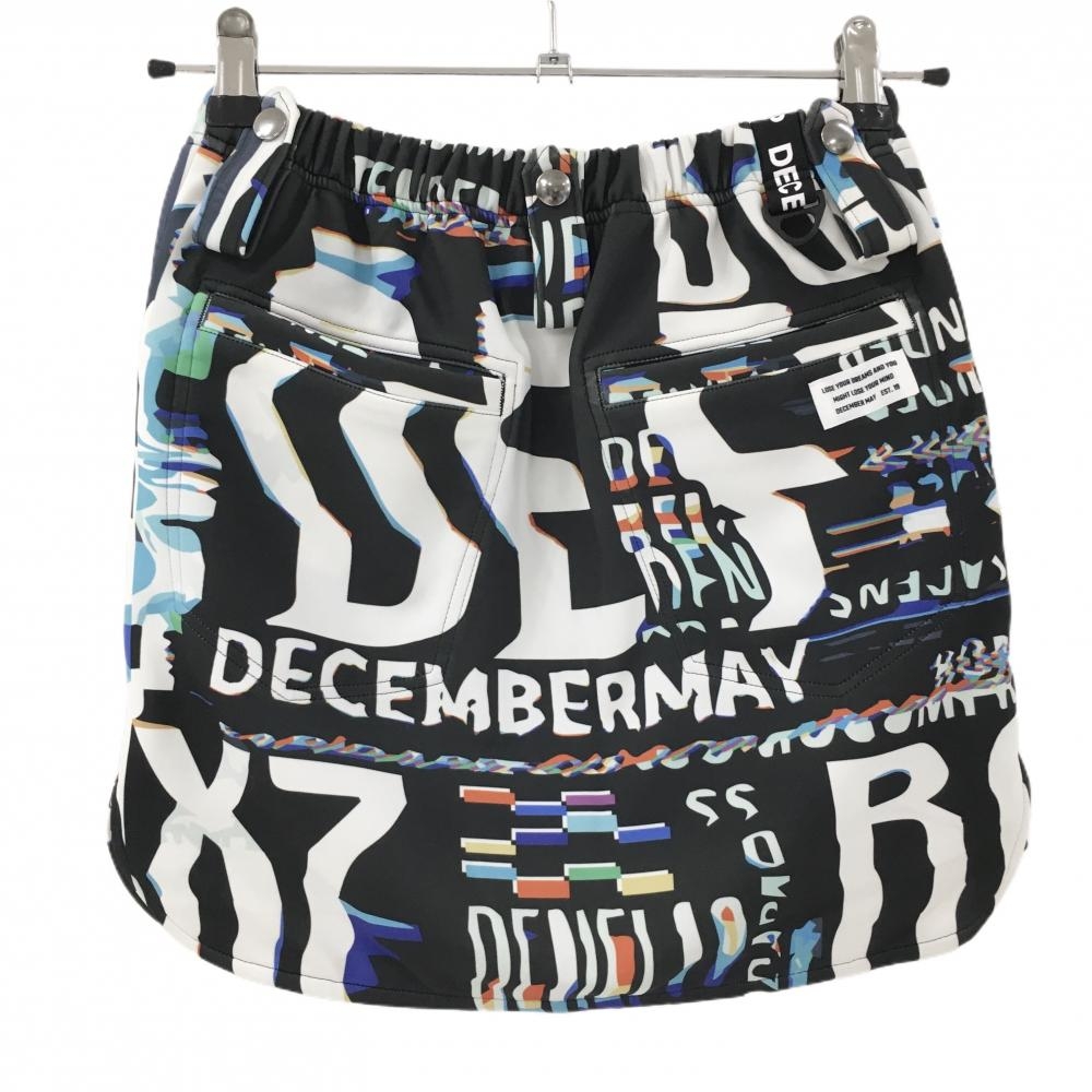 【超美品】ディセンバーメイ ストレッチスカート 黒×白×マルチカラー 総柄 ダンボールニット レディース S ゴルフウェア DECEMBERMAY