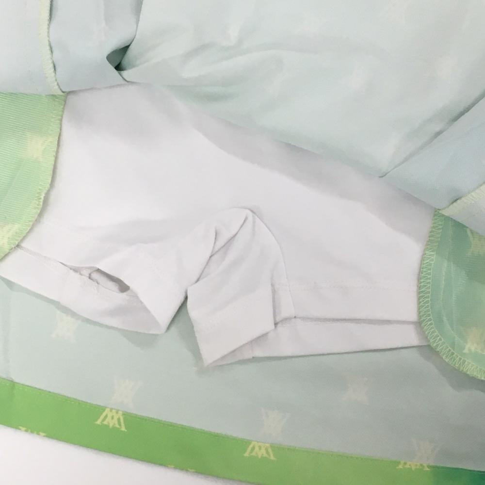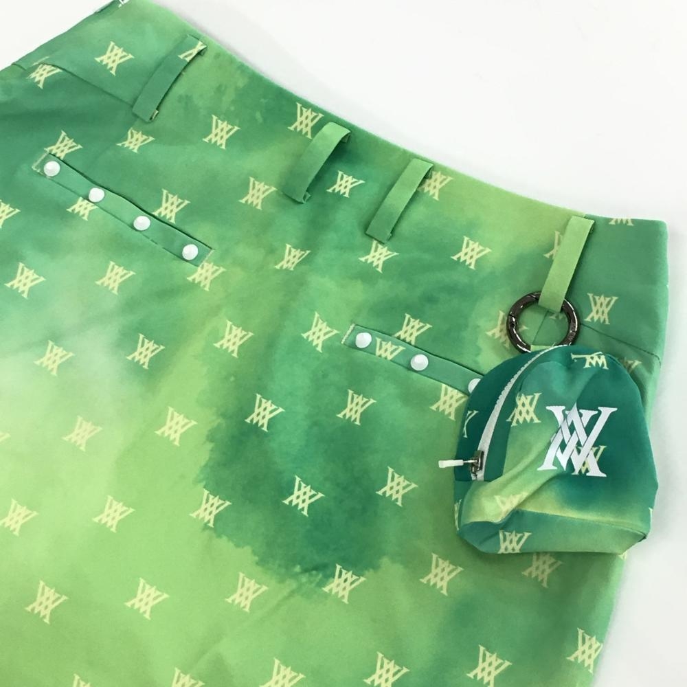 【超美品】アニューゴルフ スカート ライトグリーン×イエロー ロゴ総柄 ボックスプリーツ レディース XS ゴルフウェア ANEW