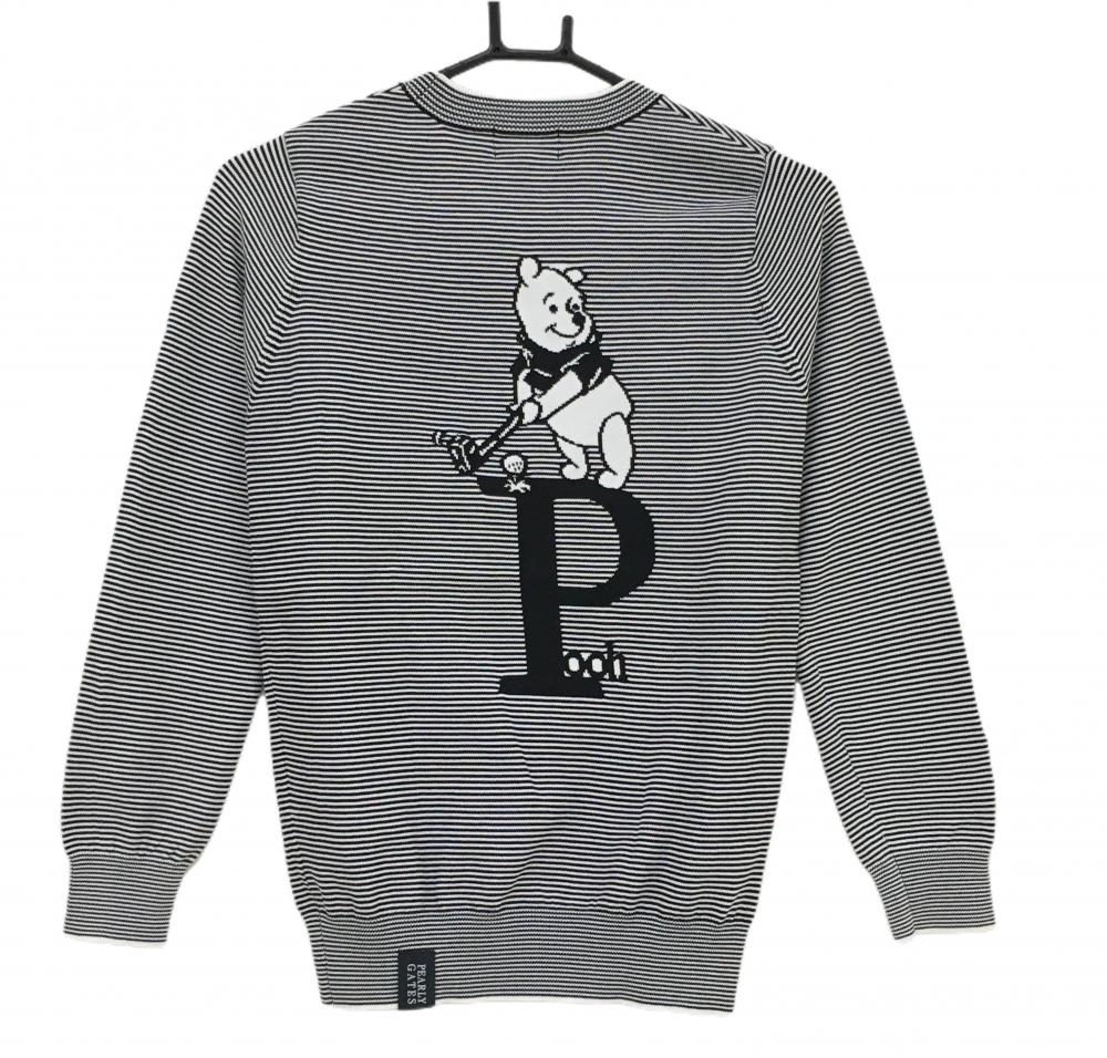 【超美品】パーリーゲイツ×Disney セーター 白×黒 ボーダー プーさん ディズニー100周年 レディース 0(S) ゴルフウェア PEARLY GATES