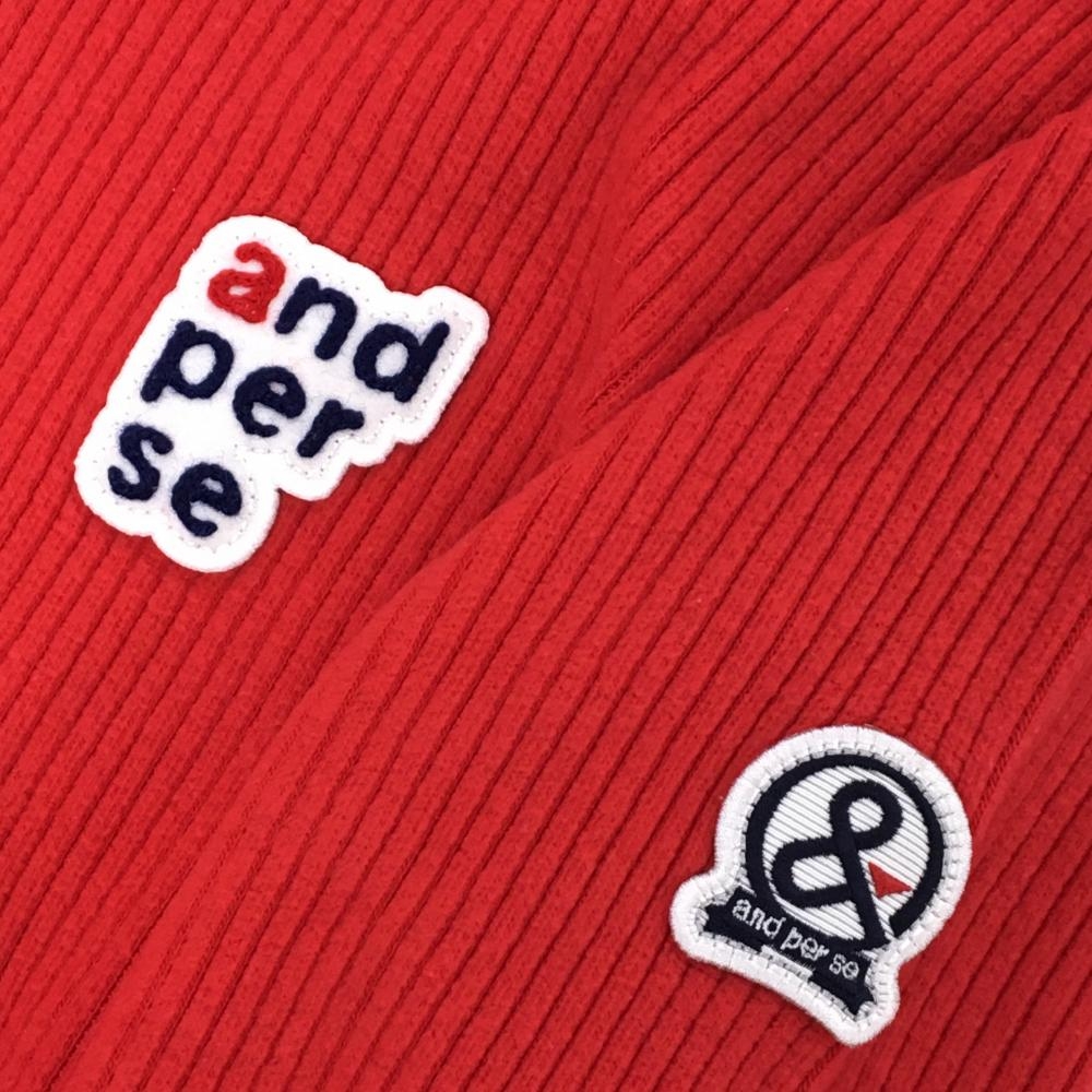 【美品】アンパスィ タートルネックセーター レッド リブ編み ワッペン ニット レディース M ゴルフウェア and per se