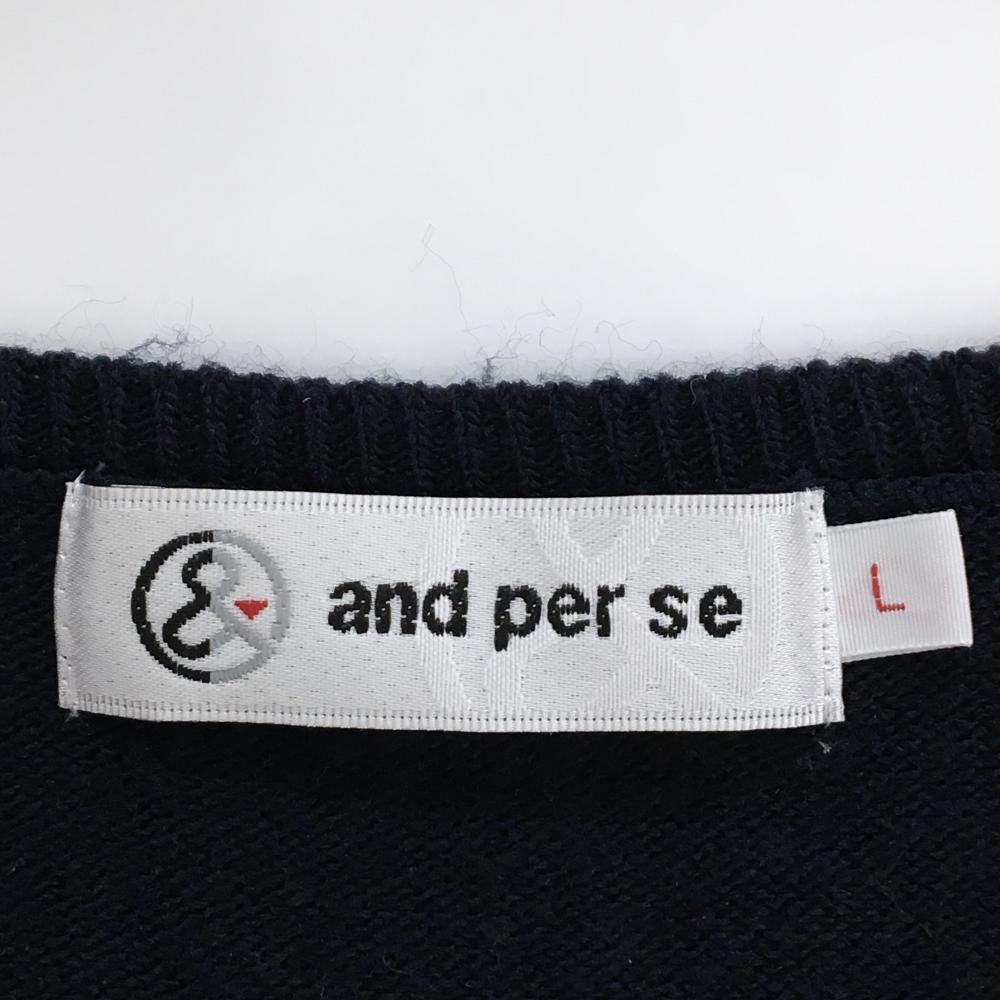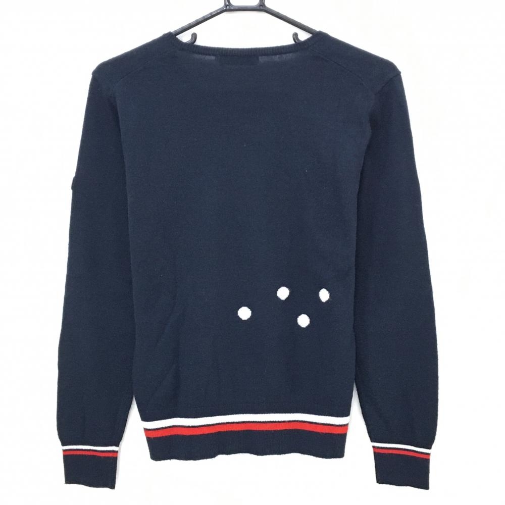 アンパスィ セーター ネイビー×レッド フラッグ ラインストーン ウール混 ニット レディース L ゴルフウェア and per se