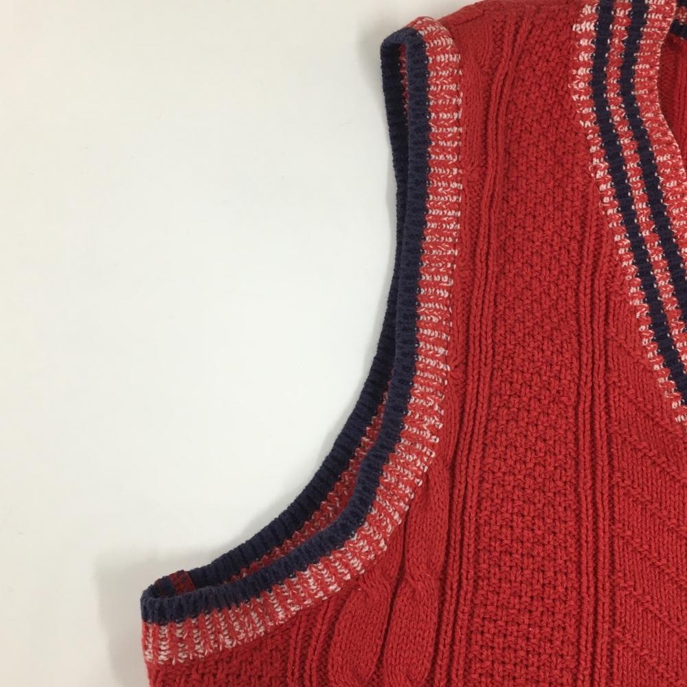 マスターバニー ニットベスト レッド×ネイビー Vネック ケーブル編み コットン混 レディース 1(M) ゴルフウェア MASTER BUNNY EDITION