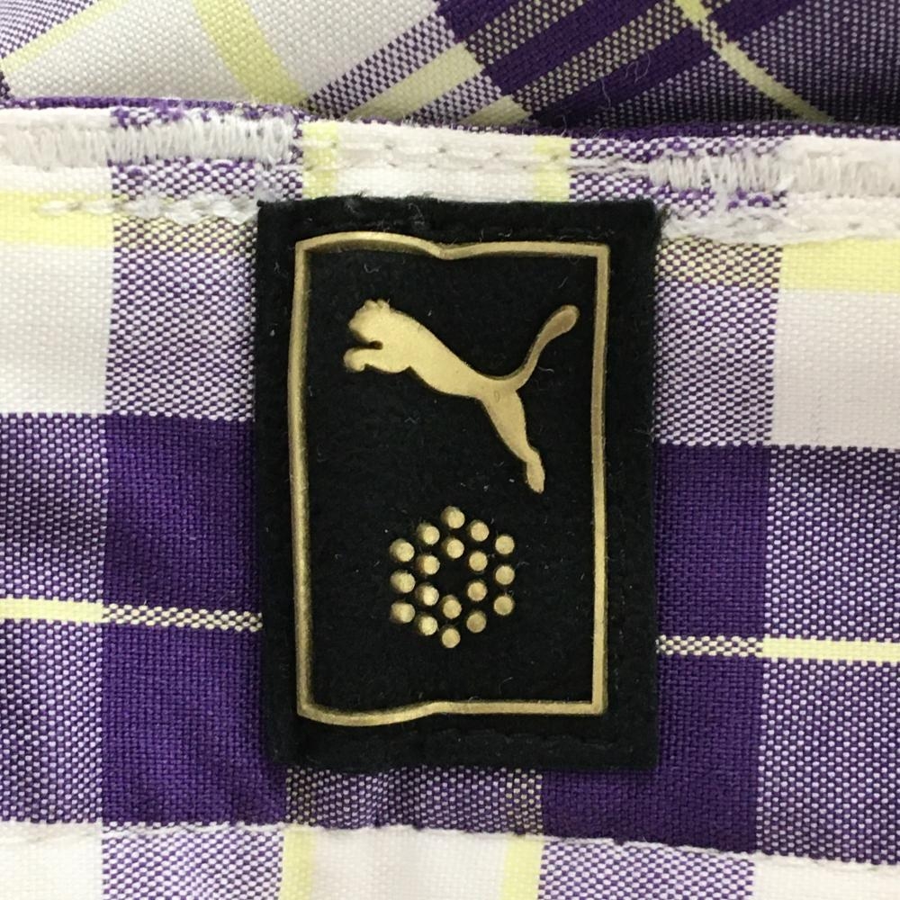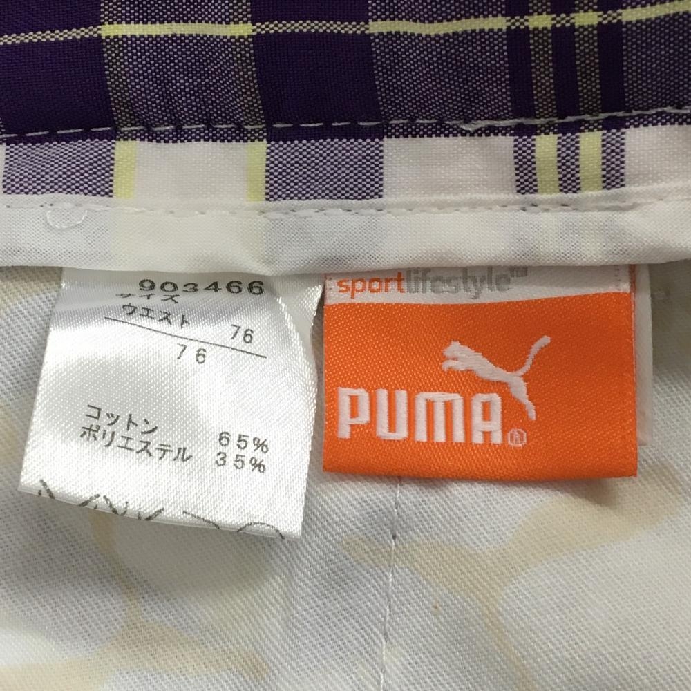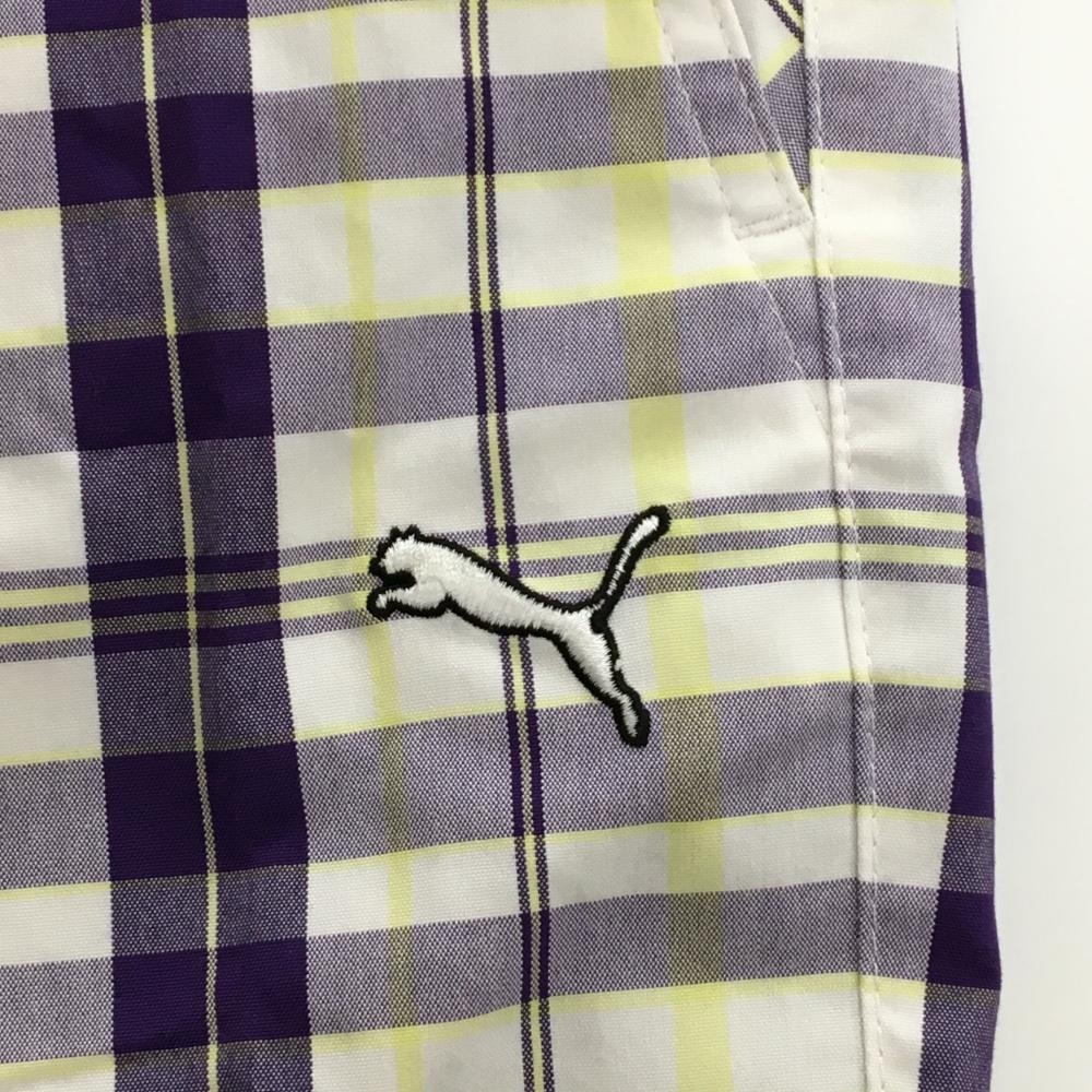 【超美品】プーマ パンツ 白×パープル×ライトイエロー チェック ロゴ刺しゅう メンズ 76 ゴルフウェア PUMA