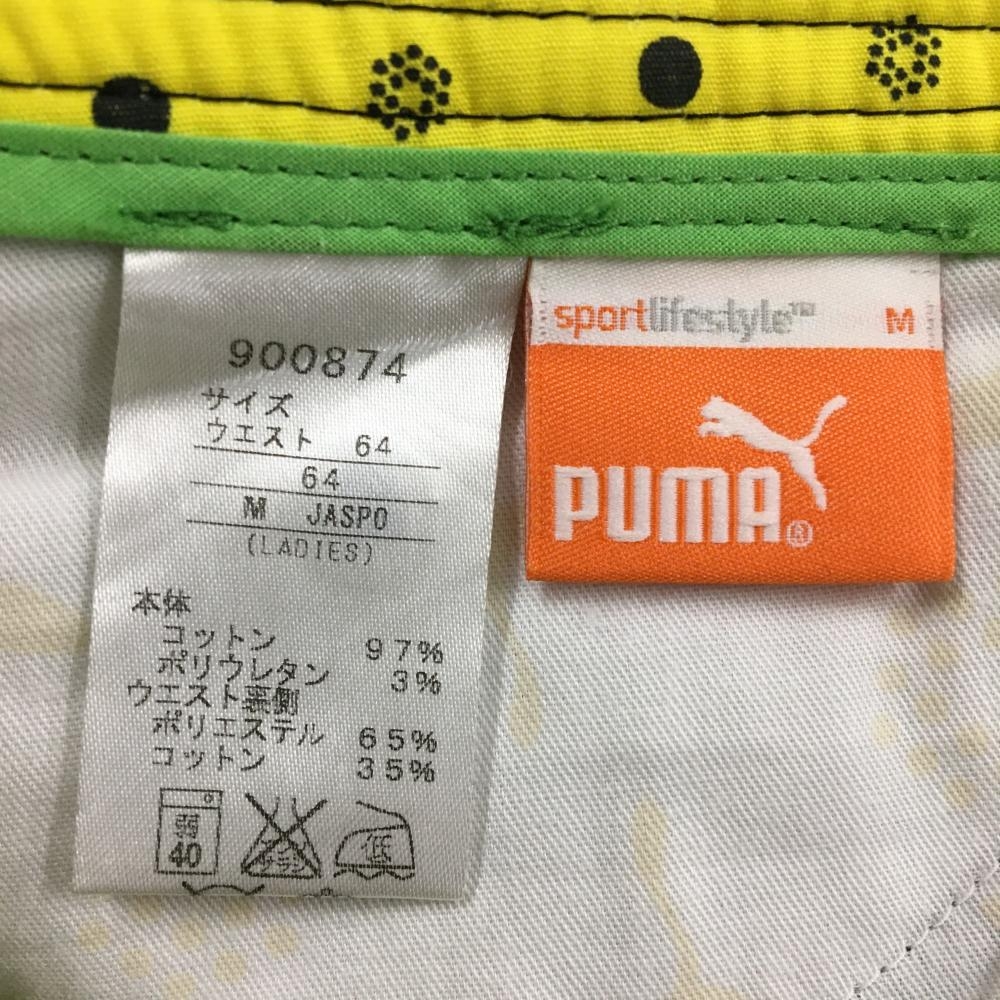 【超美品】プーマ パンツ 黒 イエローステッチ ドット地模様 ストレッチ レディース M ゴルフウェア PUMA