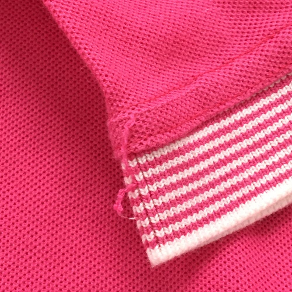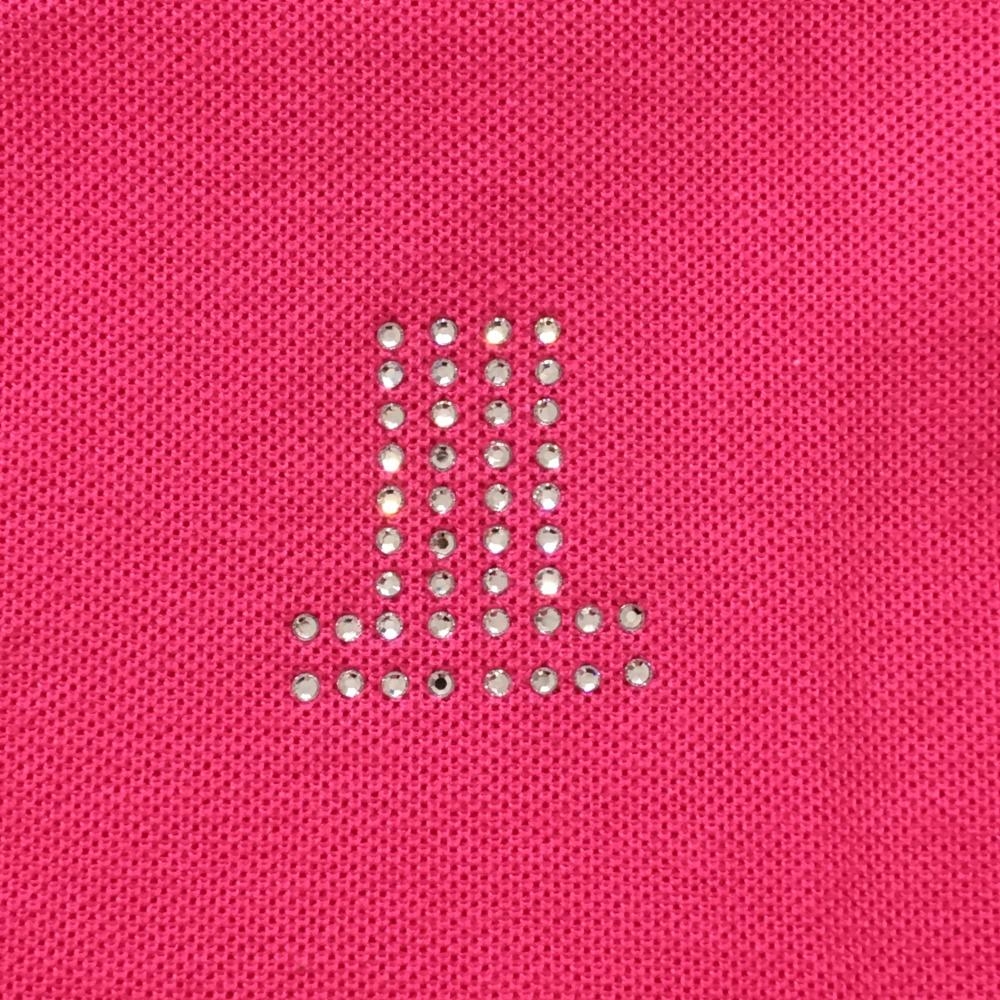 【美品】ランバンスポール 長袖ハイネックシャツ ピンク×白 ラインストーンロゴ 綿100% レディース 38(M) ゴルフウェア LANVIN SPORT