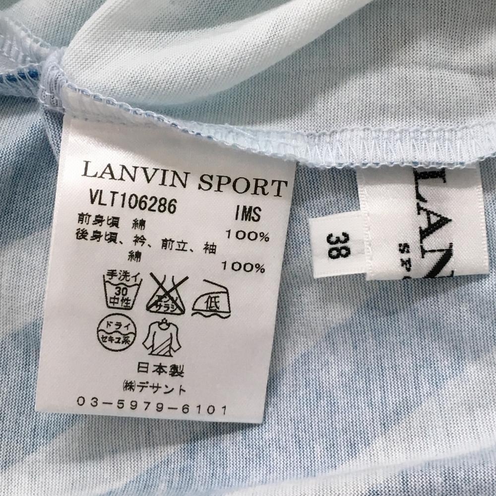 【美品】ランバンスポール 長袖ハイネックシャツ ライトブルー×ネイビー ハーフジップ レディース 38(M) ゴルフウェア LANVIN SPORT