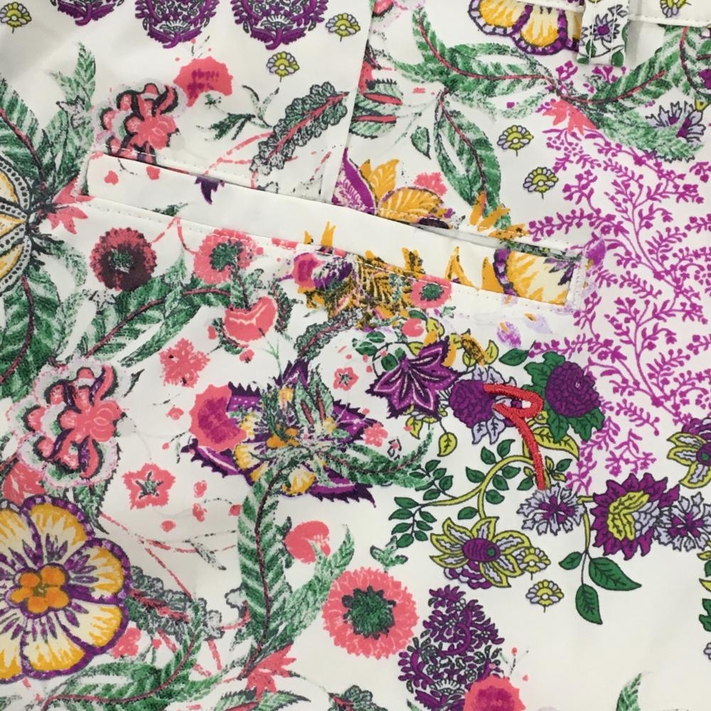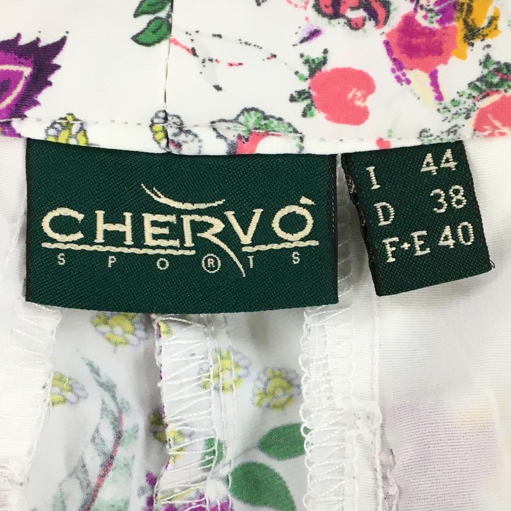 【超美品】シェルボ ストレッチパンツ 白×パープル×マルチカラー 花柄 ナイロン混 レディース S ゴルフウェア CHERVO