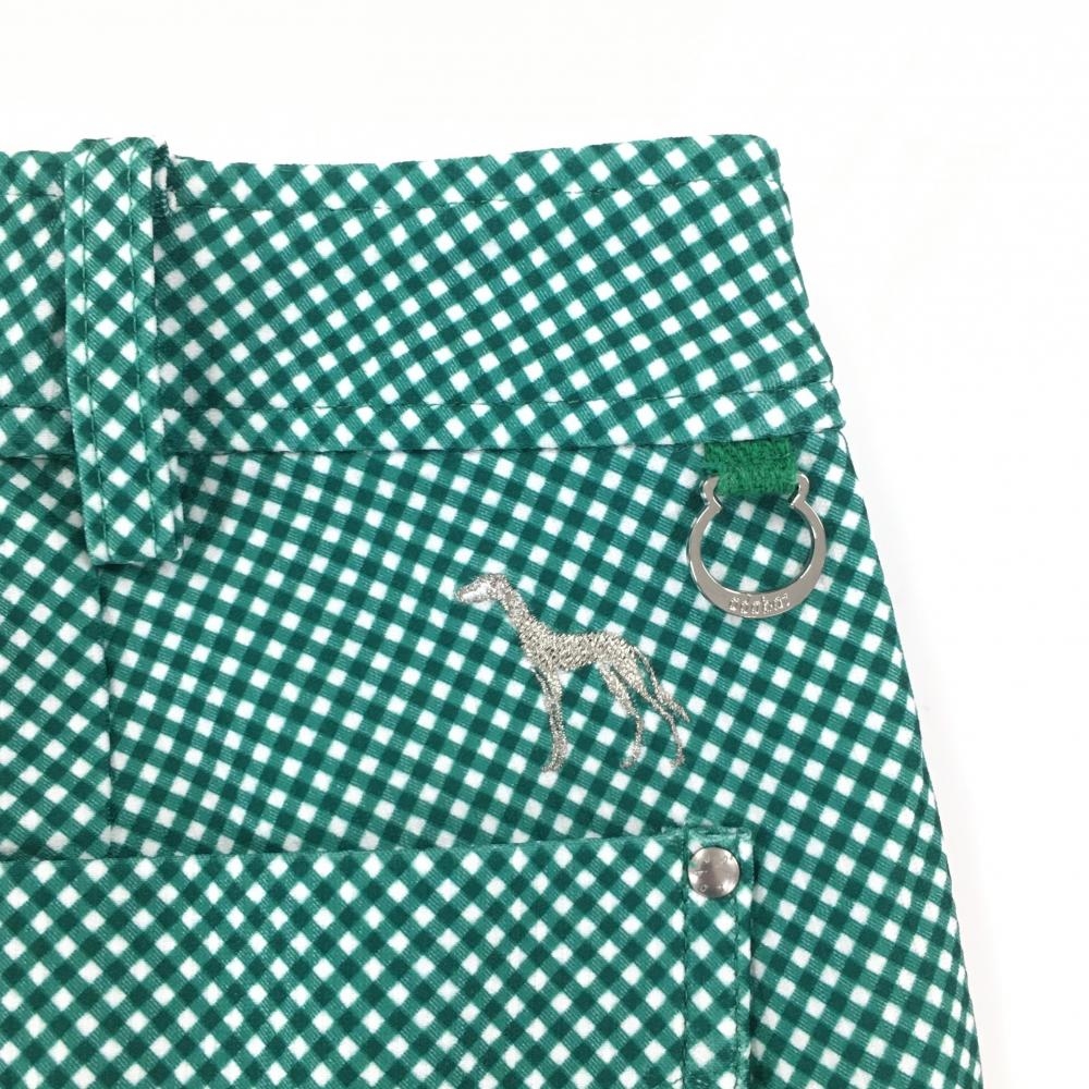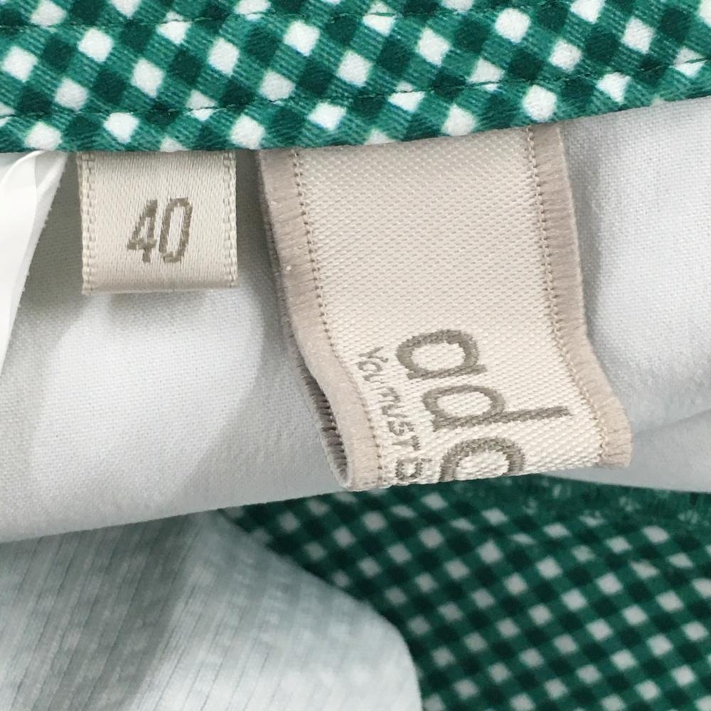 【超美品】アダバット パンツ グリーン×白 チェック ストレッチ レディース 40(L) ゴルフウェア adabat