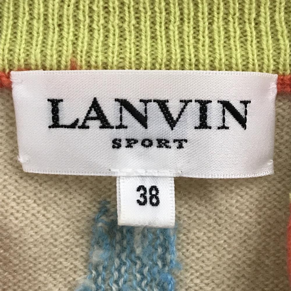 【超美品】ランバンスポール 半袖スキッパーセーター ベージュ×サーモンオレンジ レディース 38(M) ゴルフウェア LANVIN SPORT